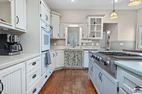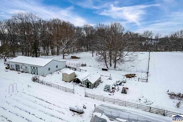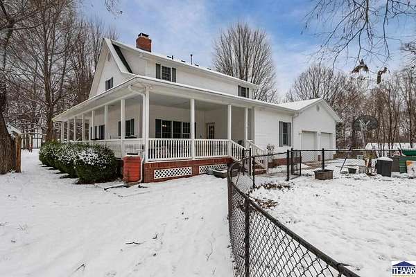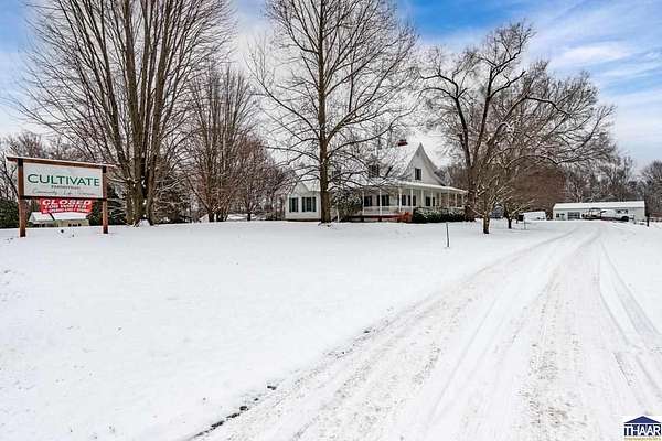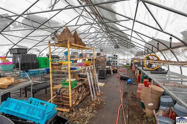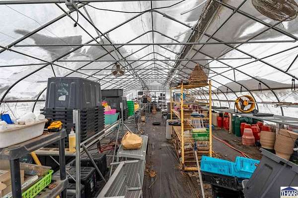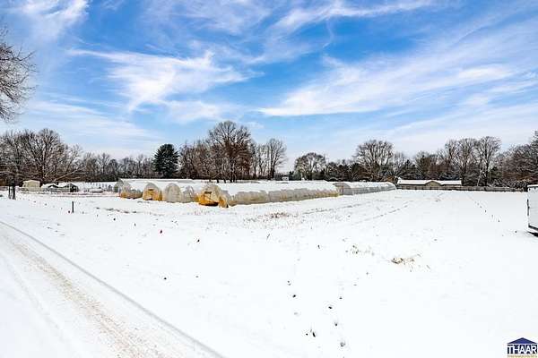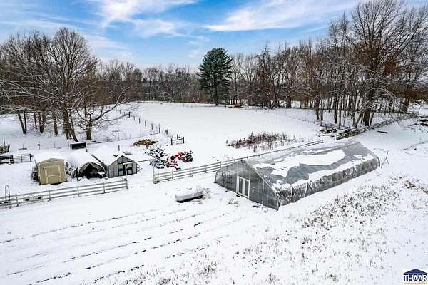 Well-maintained 1896 farmhouse, expanded in 2005, blends historic character with modern comfort. Offers 4 bdrs (or 3 bdrs + main-level studio/fam room) and 2.5 baths. A large double-sided brick fireplace (wood-burning w/natural gas starter) is the cozy centerpiece for both living and dining. Kitchen features pretty painted cabinetry, large center island, and wide-plank hardwood floors with exposed fasteners for authentic farmhouse charm. Primary ensuite includes walk-in shower, jetted soaking tub, and more hardwood floors. All windows replaced w/double-pane vinyl; carpet new in 2022. Spacious main-level laundry; dry basement offers excellent storage/workspace. Attached 2-car garage has tall ceilings. Wraparound porch overlooks 18.21 acres of scenic, fully fenced pasture used for agritourism and petting zoos. Organic farm includes approx. 20,000 sq. ft. of greenhouse-covered tillable ground (8 greenhouses total). All gardens have complete irrigation fed by wells and city hydrants. Farm has history of supplying produce to local restaurants; great proximity to traffic and local farmer's market. Barn is half converted into farm store w/glass overhead door. Items that may be purchased separately with the business: antique shelving, freezers, coolers, display cases, 6-tap kegerator. Remaining barn space offers storage. Additional outbuildings: small shed used as cooler; greenhouse serving as wash/pack area (water + electric). Orchard w/apple, pear, plum & peach trees. Playground equipment stays. Tractor, skid steer & potentially animals (bulls, donkeys, cows, Kune Kune pigs) may be purchased from the business. This one-of-a-kind property combines rural tranquility, modern updates, and a turnkey organic farm operation--perfect for hobby farmers, homesteaders, or anyone dreaming of a sustainable lifestyle/business. For those interested in buying the business: established 13 years. Ideal time to step in and prep for spring starts! Business tour available upon request.