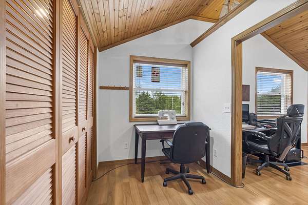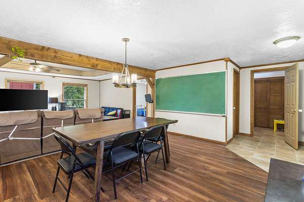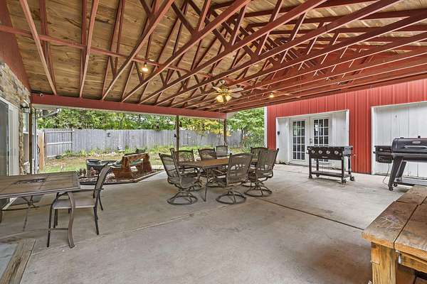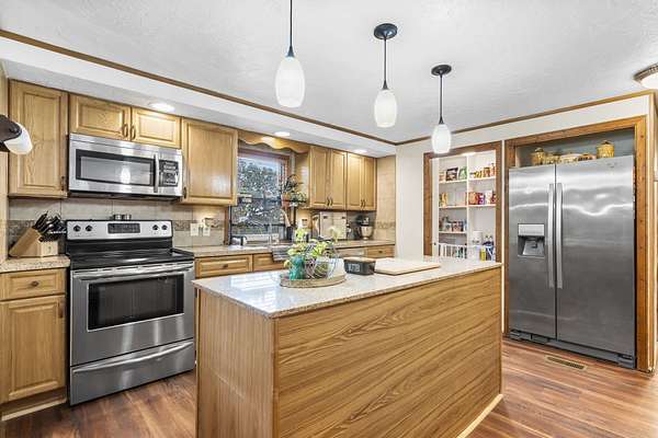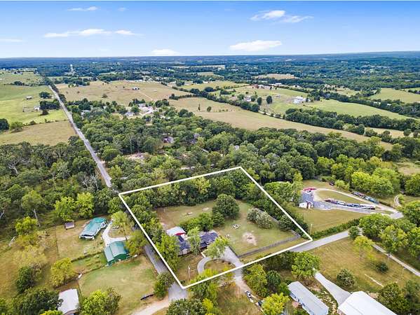 Nestled on 2.3 acres in the Ozarks, this spacious home with 3 beds, 2.5 baths, and 3 total garage spaces (20x40'shop) offers the perfect balance of comfort, function, and peaceful surroundings. Featuring a new roof in 2025 and solar panels. A welcoming covered front porch leads into the open floor plan where the dining room flows seamlessly into the kitchen and living area. The kitchen is well-appointed with granite countertops, stainless steel appliances, a center island, and a walk-in pantry, while the living room features a tray ceiling that adds to the airy feel of the space. One option for a primary bedroom is located on the main level, complete with an attached bath offering a dual sink vanity, soaking tub, and walk-in shower. Another bedroom with a striking vaulted wood ceiling also sits on the main level and provides direct access to the covered back patio. Upstairs you'll find flexibility with either a second option for a primary suite or a second living space, complete with a full bathroom. Outdoor living is just as inviting with a large covered patio and breezeway connecting the home to the shop, creating the perfect spot for gatherings or quiet evenings. The backyard has a privacy fence, offering space for pets, play, or simply enjoying the outdoors. With its versatile layout, updated features, and acreage setting, this property captures the essence of spacious Ozark living.