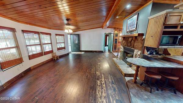 Embrace the warmth and character of country living in this private home. The rustic charm begins with the living area's wood-paneled ceiling, creating an inviting atmosphere perfect for relaxation or entertaining. The kitchen, a blend of modern convenience and rustic appeal, features ample wooden cabinetry and state-of-the-art appliances. Unwind in the primary bathroom, complete with a spa-like jacuzzi tub. The spacious primary bedroom offers a tranquil retreat with natural light and direct outdoor access. Throughout, you'll find unique touches that make this house a true home, from the cozy fireplace to the custom additions. This property isn't just a place to lay your head; it's an invitation to a simpler, more fulfilling lifestyle in the heart of Tennessee.
