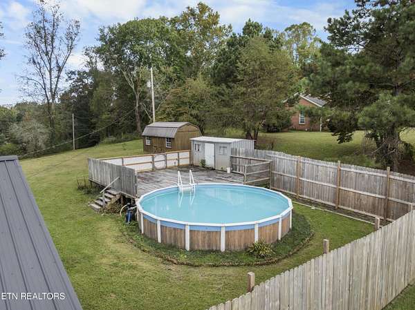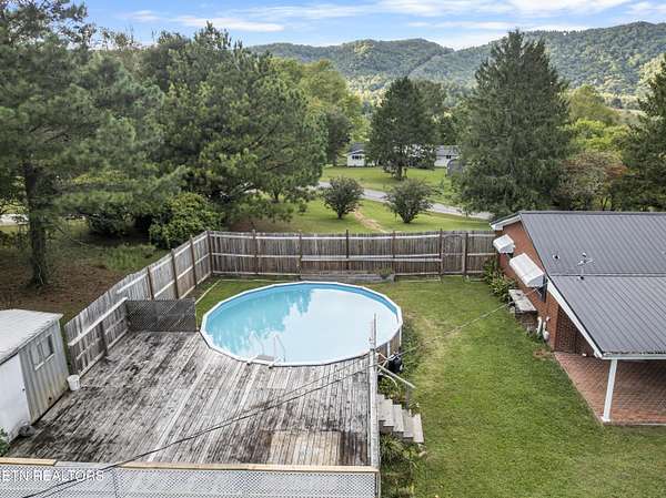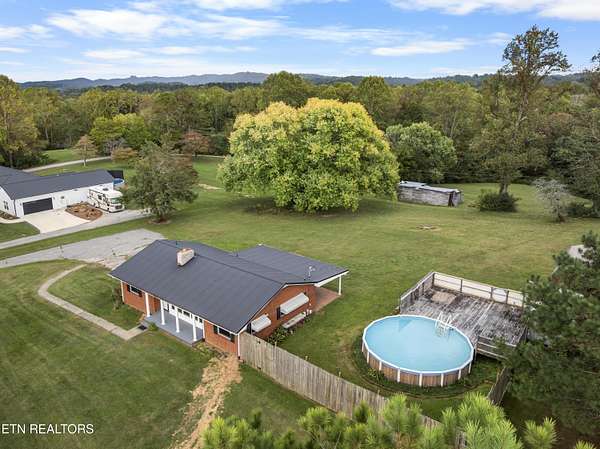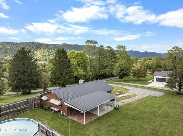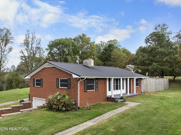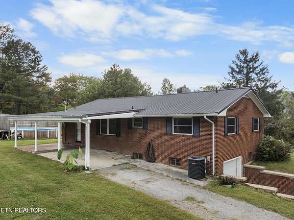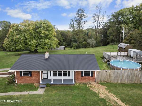 Check out this brick basement rancher sitting on nearly 3 acres of level land! This 3-bedroom, 1.5-bath home features original hardwood flooring and a spacious living room with a wood-burning fireplace, where the large windows frame beautiful views of the Cumberland Mountains. A formal dining area adds to the charm, while a full unfinished basement provides plenty of room for future expansion. The exterior is designed for low maintenance with its durable brick construction and metal roof. Step out back to enjoy the covered porch overlooking the pool - perfect for relaxing or entertaining. This home is ready for your vision - add your updates and style to make it uniquely yours. Located just minutes from ATV trails and Norris Lake, this property offers both convenience and potential. Call today for your private tour!