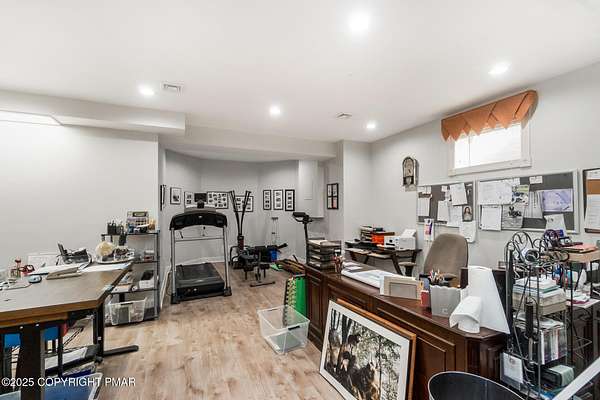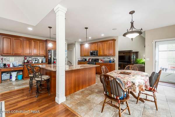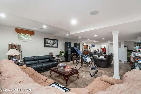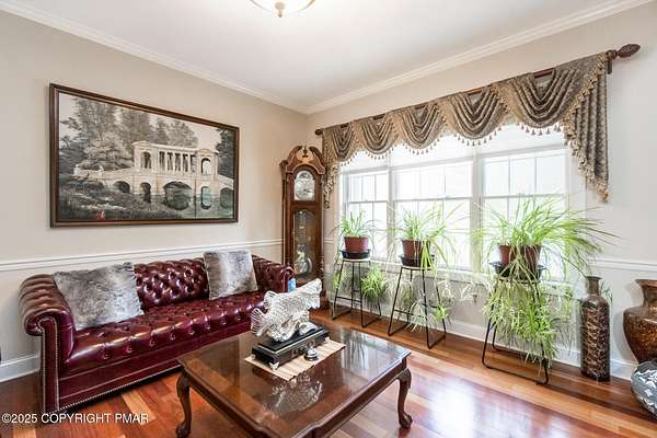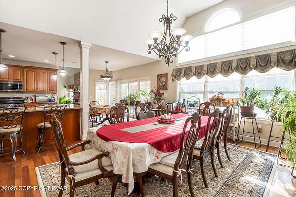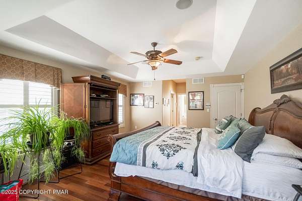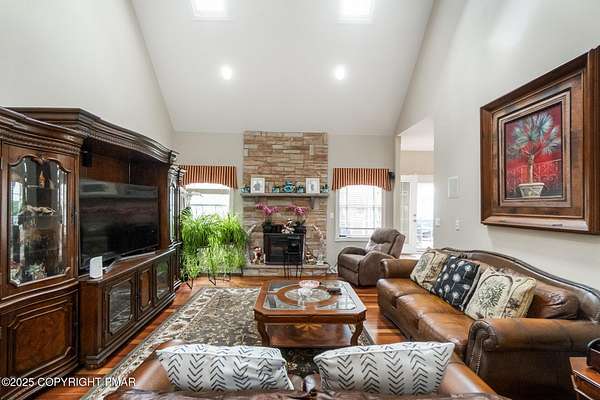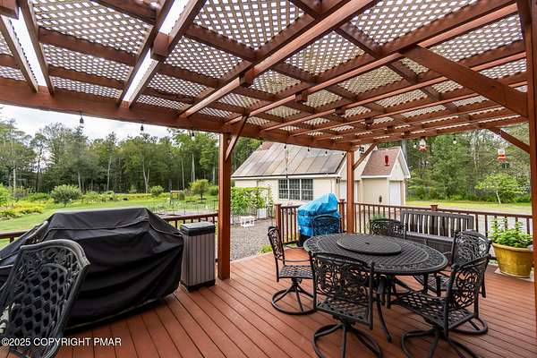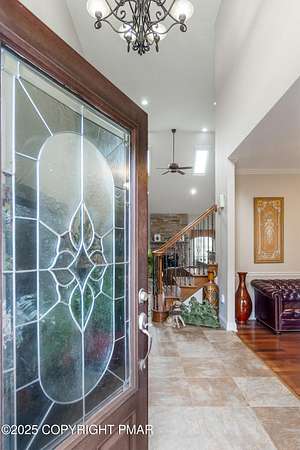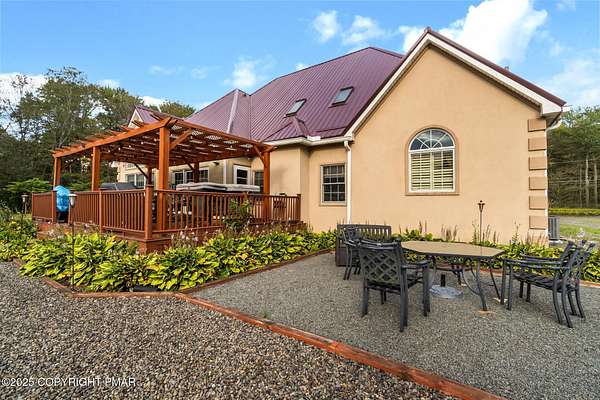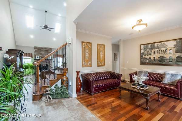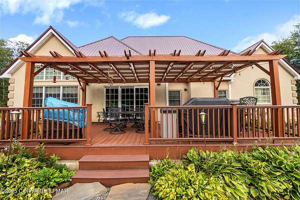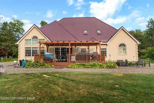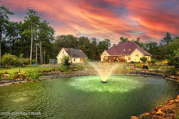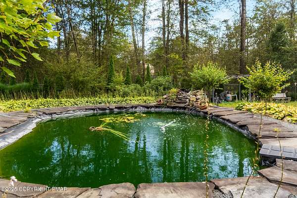 An Exclusive Retreat Experience the epitome of luxury living in this exquisite Cape Cod, nestled within the prestigious, community of High Country Estates. This stunning 4-bedroom, 4+-bath home sits on a completely fenced lot with gated entrance, offering unparalleled privacy and security. Step inside and be captivated by the open, flowing layout, highlighted by amazing hardwood flooring that spans the entire home. The heart of this residence is the massive gourmet kitchen and dining room, perfect for hosting unforgettable gatherings. A large deck off the back provides an ideal space for seamless indoor-outdoor living. The main floor is home to a serene primary suite, featuring a spacious bedroom, a spa-like bathroom, and generous walk-in closets. Outdoor enthusiasts will revel in the meticulously landscaped grounds. The property features two beautiful koi ponds, a variety of mature fruit trees, and vibrant flowers and vegetation. A true gardener's paradise. The finished lower level is an entertainer's dream, complete with a full bathroom and a stylish wet bar. With two large rooms, this versatile space is perfect for a family room, recreation room, or home theater. For the hobbyist or car enthusiast, the four-car garage offers space, with a finished second floor that can serve as a studio, office, or gym. This home is also a testament to modern sustainability, equipped with owner-owned solar panels and a whole-house generator with battery backup.