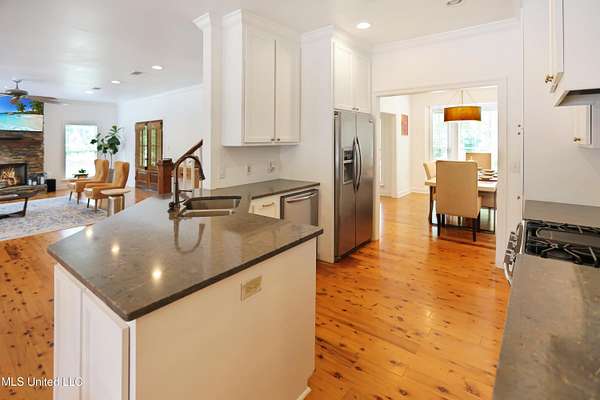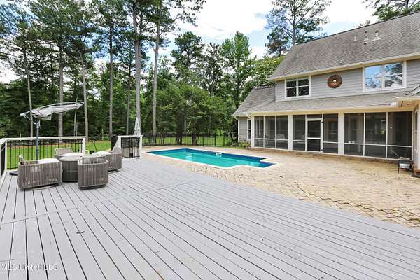 Welcome to 328 Ingleside Drive in Madison, a beautiful custom-built home set on over two acres in the desirable Ingleside subdivision. This spacious residence offers approximately 3,385 square feet with five bedrooms and three and a half bathrooms. The home features a welcoming wrap-around front porch and a screened-in back patio, creating inviting spaces to enjoy the peaceful surroundings. Inside, the great room showcases Australian cypress wood floors, a gas fireplace, and double doors opening to the front porch. The formal dining room provides an elegant setting for entertaining. The kitchen is designed with functionality and style in mind, including granite countertops, stainless steel appliances, soft-close cabinetry, and a walk-in pantry. A cozy breakfast area sits just off the kitchen, overlooking the backyard. The primary bedroom suite, located on the main level, includes two walk-in closets, double vanities, a jetted tub, a separate shower, and direct access to the screened-in patio. Upstairs, there is a large den, four additional bedrooms, and two full bathrooms. The fifth bedroom is oversized and offers flexible use as a media room, home gym, playroom, or bonus space. Outside, enjoy a private backyard retreat with an in-ground pool and a large deck, ideal for summer relaxation and gatherings. The landscaped yard, side-entry garage, and architectural shingle roof add to the home's appeal. Located within the Madison Station Elementary and Madison Central High School zones. Schedule your private showing today and discover all that this exceptional home has to offer.