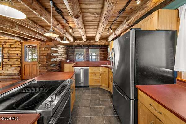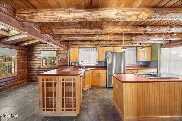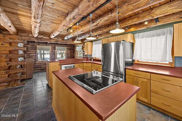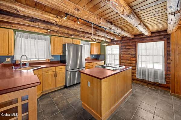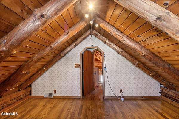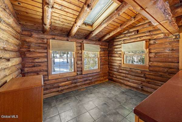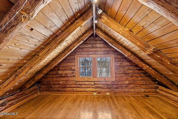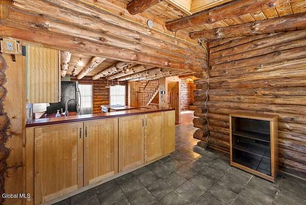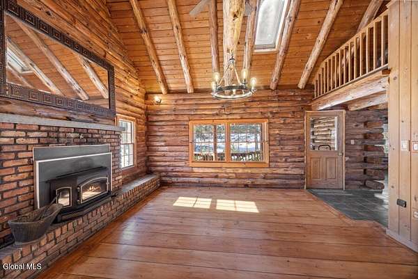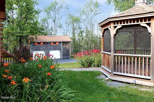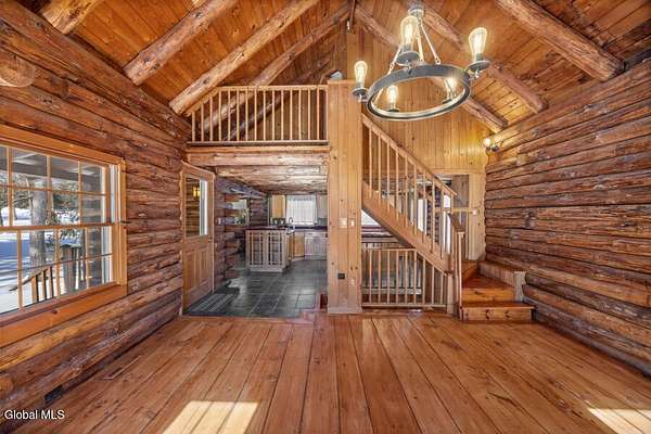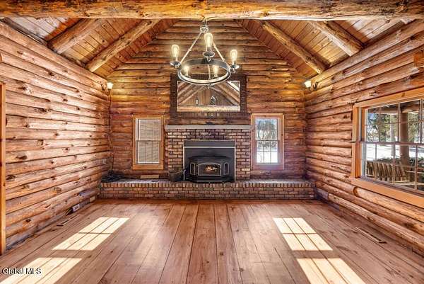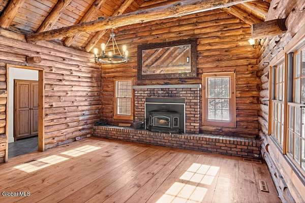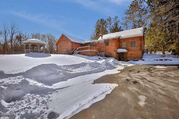 Looking for a log cabin retreat set down a long paved driveway on a private 3 acre lot with an easy 25 minute commute to Albany? This rustic log cabin includes a modern updated kitchen, dining room, open concept vaulted ceiling living room with a wood stove and plenty of natural light. Large first floor suite with a walk in closet, high ceilings and a garden tub full bathroom. Updated second full bathroom, second floor bedroom with a loft home office area. Lower level has a family room and a large laundry room with plenty of storage. Detached two stall garage with power garage doors, side stall storage, and a second floor workshop. Enjoy the scenic views on the front covered porch swing, entertain family and friends on the large rear trex deck, or simply enjoy nature in the back lawn gazebo. Schedule a private tour today!