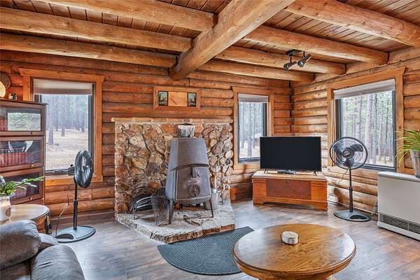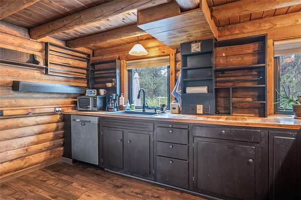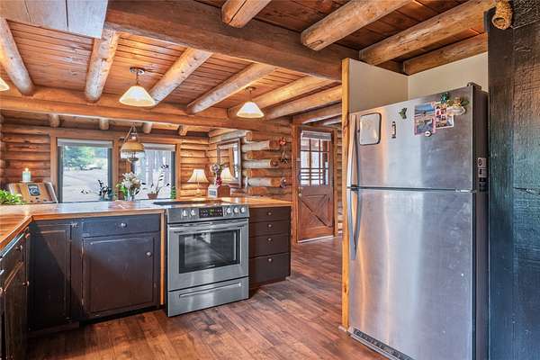 Welcome to 328 S. Kootenai Road-a beautifully crafted Real Log Home nestled on 2.95 wooded acres on the sought-after west side of the Bitterroot Valley. This peaceful property offers privacy without sacrificing convenience-only minutes to downtown Stevensville, Bitterroot Health, and Super One Foods. This charming 3-bedroom, 2-bath log home showcases true Montana character with warm wood tones, open living spaces, and serene forest views. The entire lower level is a private primary suite, offering a spacious retreat with generous closet space and an ensuite bath. Updated flooring throughout as well as all new windows. Enjoy the outdoors year-round with mature trees, abundant wildlife, and thoughtful amenities including a detached garage and a standalone sauna building-perfect for unwinding after a long day. If you're looking for a cozy and well-located log home with space to breathe and grow, this property is a must-see.