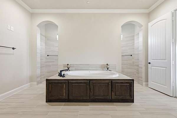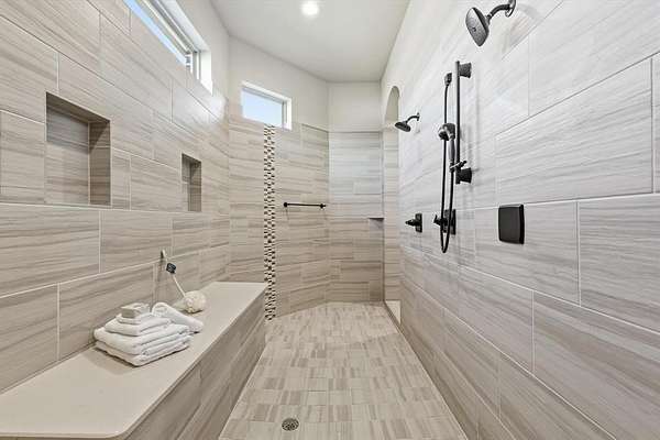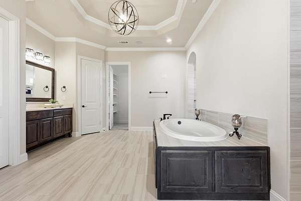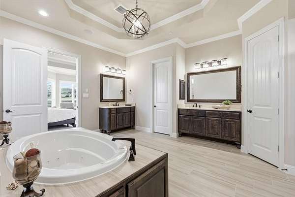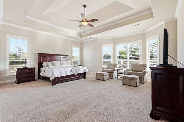 Step inside to find 4 spacious bedrooms, each with its own private ensuite bathroom, plus an additional guest bath. The owner’s suite features a tray ceiling, a spa-like bath with dual vanities, soaking tub, and an oversized shower, along with a large walk-in closet.