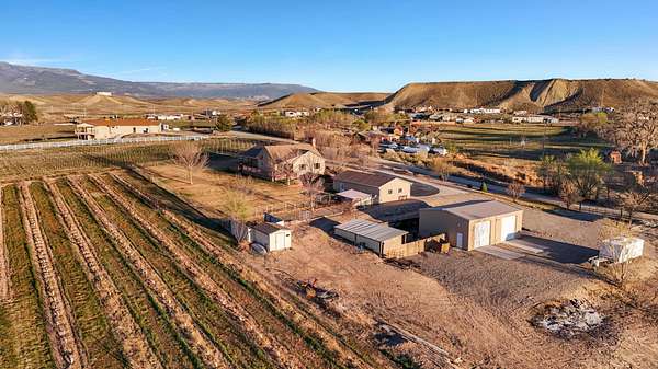OPEN HOUSE - SATURDAY 3/28/26 12-3PM Set on 6.54 acres with 4.81 acres of professionally managed August Prince peach trees, 3280 B 1/2 Road offers a beautiful blend of country living and refined everyday comfort. Tall vaulted ceilings create an airy sense of space throughout the home, especially in the living room, where a striking fireplace serves as its warm and inviting focal point. The kitchen continues that open feel, with views from the sink stretching across the expansive yard to the Bookcliffs and Mt. Garfield beyond. Thoughtfully designed for both quiet moments and meaningful gatherings, the home also includes a dedicated office and formal dining room. Along the back, a full-length deck creates the perfect setting for entertaining, overlooking the open landscape and capturing views that transform with the light. The fully fenced yard is supported by a functioning sprinkler system, while the detached 3-car garage with an office and the large heated 2-door shop provide flexibility and purpose. Pre-inspected for added confidence, this is a beautifully maintained property where productivity, scenery, and elegance come together with the gentle promise of spring. The home features new interior paint and some new flooring. Call today to schedule your tour.
