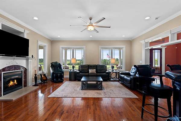Welcome to this remarkable estate set on 36.7 acres in a serene country setting. A picturesque pond greets you at the front of the property, stocked with fish for peaceful afternoons by the water. The main residence spans four stories with a full basement, featuring a grand theater/media room with surround sound. This home is filled with high-end finishes, including sleek Kenmore Pro appliances, elegant Italian flooring, and extensive crown molding throughout. A breezeway connects the main house to the detached garage, which also includes a studio apartment. From the basement, a unique tunnel leads directly to garage. Enjoy the wrap around porch. Also 2nd house includes 2,054 Sqft.