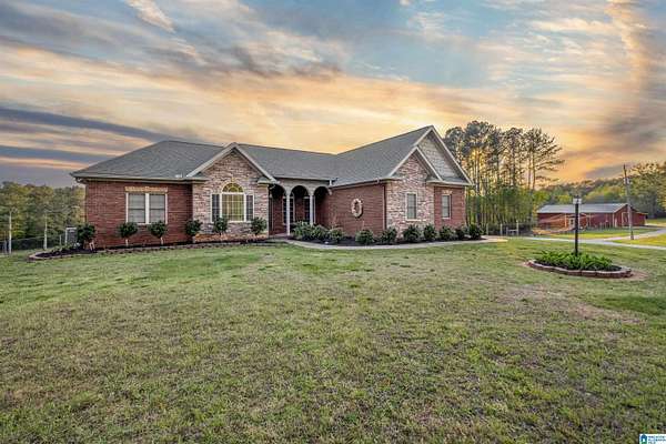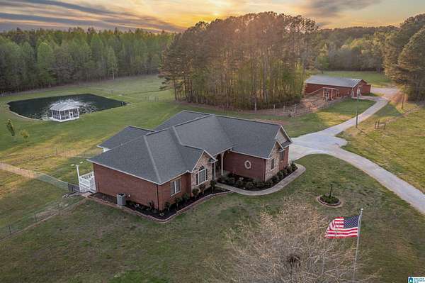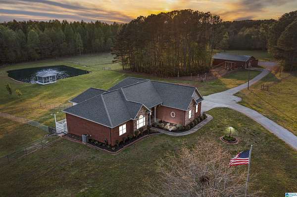 Professional photos coming soon! - This stunning full brick home on almost 14 acres in Heflin offers the perfect blend of beauty and function. The property features cross-fenced pastures ready for livestock, two lakes that have been stocked each season, and a gazebo with a patio overlooking the water and fountain. The main level includes 3 bedrooms, 2.5 bathrooms, a sunroom, dining room, private office, eat-in kitchen, and laundry room. The full basement offers a complete in-law suite with its own entrance and garage—ideal for guests or multi-generational living. Additional highlights include a 40x60 barn, fruit trees, over 1,000 feet of road frontage, whole-home water filtration, and a security system. Lovingly maintained with detailed records, this move-in ready property is a must-see!