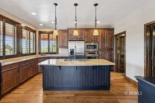 Situated on 2.4 acres in a peaceful cul-de-sac, this beautiful mountain retreat is surrounded by mature pine and oak trees and showcases stunning views of rose-hued cliffs and the tranquil valley below. Thoughtfully designed for both comfort and functionality, the home offers 4 bedrooms, 3.5 bathrooms, and inviting living spaces on both the main and lower levels. The well-equipped kitchen features warm wood flooring, granite countertops, stainless steel appliances, and a spacious island ideal for gathering. Step outside to the wrap-around covered decks, perfect for entertaining or simply relaxing while enjoying sweeping views and watching wildlife wander through the natural landscape. A 1,200 sq ft detached garage and workshop provides ample room for ATVs, snowmobiles, boats, trailers, and all your mountain adventure gear. Located in the Elkridge subdivision, ideally positioned between Bryce Canyon and Zion National Parks, this property makes an excellent basecamp for outdoor exploration. Vacation rentals are permitted, offering both lifestyle and investment potential.