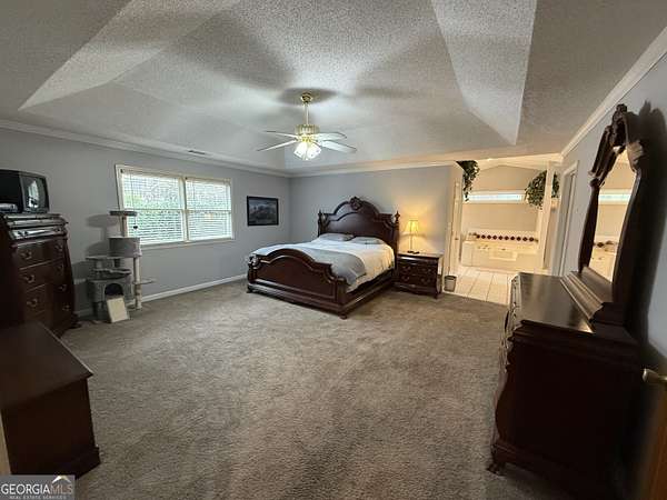 Must see private oasis located on 2.51 acres. Enjoy this sprawling heated space all on ground level. Wide doorways and stepless entry. Open concept living with a split bedroom floorplan. This peaceful homestead offers master on the main and two secondary bedrooms that share a Jack/Jill bathroom along with a half bath for guests. In addition, enjoy a private office/library or sip coffee from the oversized sunroom. Custom tile flooring in main living area with decorative tile medallions. Carpet in the bedrooms. Separate entrance from the garage to a bonus room with a full bath. Could be a 4th bedroom or short/long-term rental possibility. New metal roof added October 2025. Property has open space front and back with a natural tree line surrounding for the ultimate privacy. Firepit area outback to enjoy those cozy evenings. Convenient to shopping. Easy access to Interstate 20. Shown by appointment only. Home is occupied. We look forward to working with you. This one is a rare find!!