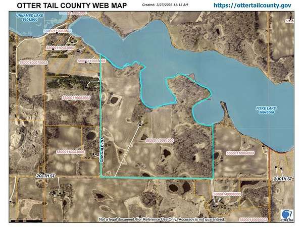 This is not just land-this is legacy: 132 +/- acres of pure possibility in Otter Tail County with over 6,000 feet of frontage on Fiske Lake, a 253 acre lake reaching depths of 26 feet perfectly suited for anglers and outdoor enthusiasts. This is a rare combination of woods, pasture, and productive tillable acreage that offers unmatched flexibility to create a private family compound, develop a premier lakeside. neighborhood, or simply enjoy one of the most secluded settings in the region, complete with a well-built 2 bedroom home from 2007 with attached garage and a 24x36 shop. This is a once-in-a-lifetime opportunity to own unmatched lakeshore and absolute privacy in one extraordinary property.