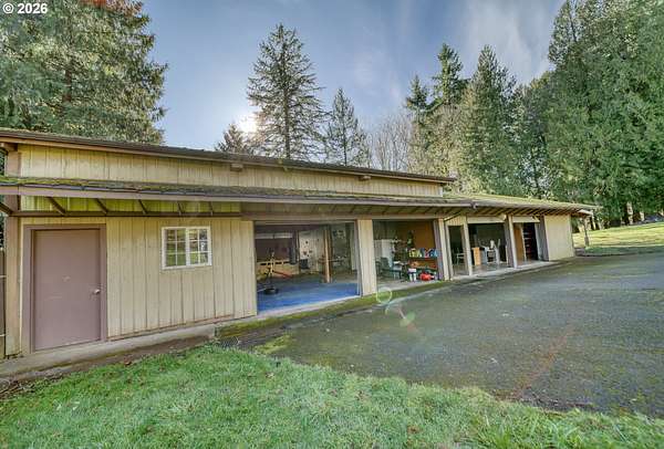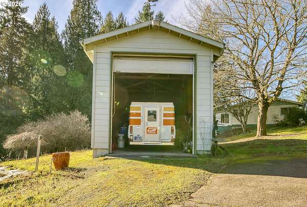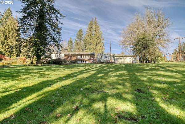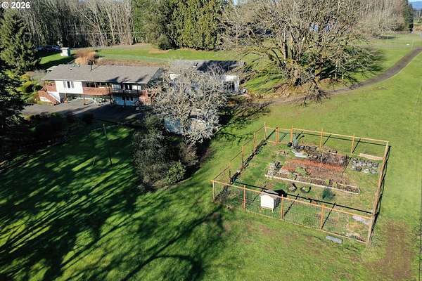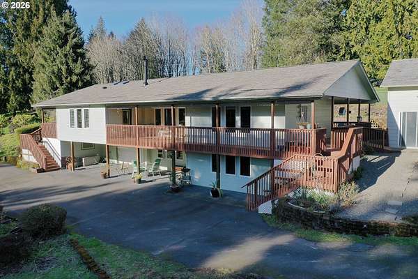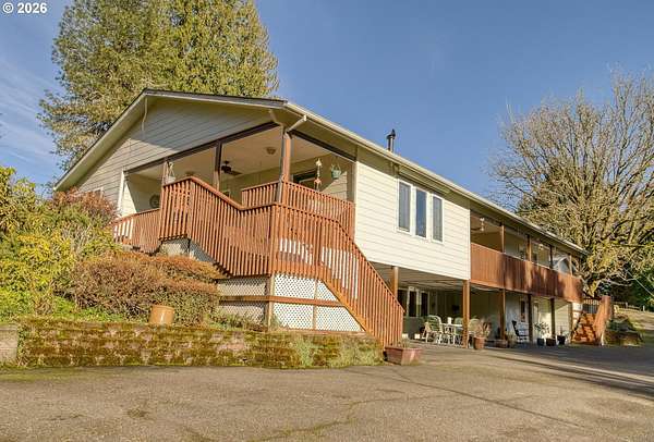 Multigenerational opportunity with 2 separate homes. Expansive property of fully fenced acreage. Primary home offers exceptional amenities throughout with spacious layout ideal for accommodating multiple households. Hardwood floors enhance the main living areas. The primary bedroom features parquet flooring and ensuite bathroom with a stand-up shower, tub, and walk in closet. Upstairs bonus bedroom is accessible through barn door accent and features a kitchenette, full bath, two-way blinds, and designated exterior access. The kitchen features automatic exterior blinds, newer fridge, double ovens, and free standing stove w/downdraft. Dual skylights. Formal dining area has dual access to expansive covered deck. Downstairs living area with direct access to covered entry and attached garage. Large walk in pantry. Versatile utility room with designated services for lower level. Multiple heating/cooling systems for optimal comfort. Central vacuum. Outdoors, enjoy a terraced backyard, cherry trees, a peaceful cedar grove, woodshed, storage shed, and a fully fenced garden area with raised garden beds. Separate 1162 sqft manufacture home with adjacent 2 car garage. Relax or entertain in the 1612 sqft. pool-house which features a 25,000-gallon fiberglass pool and hot tub surrounded by custom glass set in hand-stained cedar. The property is well-equipped with three wells (one producing approximately 25+ GPM), three septic systems, a 200-gallon propane tank for heating pool, RV dump, detached tall 517 sqft. RV garage, additional detached garage, and a large shop featuring a loft and service pit. 1/2 baths in shop/poolhouse. This unique property offers space, infrastructure, and opportunity for comfortable rural living. Chicken Coop. Open space for animals, hobbies, or recreation. A rare opportunity just minutes from local conveniences. Privacy and self sufficiency. This home has it all to offer. Columbia River PUD for electric. Seen by appointment only. Floor Plan available.