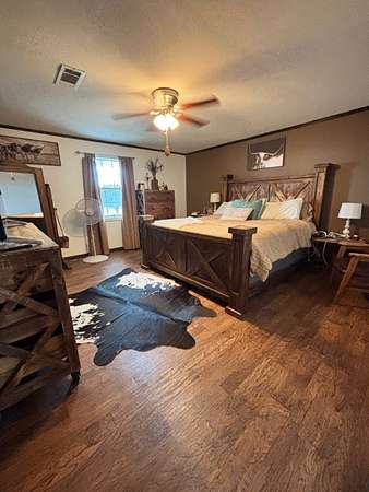 Set back on Corleyville Rd, this farmhouse style property delivers the kind of space, privacy, and versatility that's hard to find. All on 10 beautiful pasture acres, with multiple expansion options up to 94 acres. The main home offers 3 bedrooms and 2 bathrooms, plus a partially finished upstairs already framed for additional bedrooms, a bonus room, or flexible living space. Whether you need room to grow now or later, the potential is already built in. Outdoor living is a highlight here, with 50 foot front and rear porches designed for quiet mornings, evening sunsets, and wide open views of your land. This property truly shines for buyers who need functionality and infrastructure. Improvements include a 40'x41' barn, 52'x77' barn, 48'x80' shop with living quarters, 24'x34' three car garage, and a detached carport. Ideal for equipment, hobbies, livestock, or a home based operation. A pond, pool with pool house, and solar panels add both lifestyle appears and efficiency.