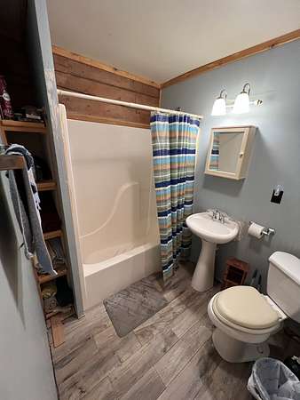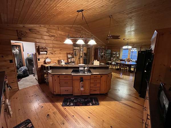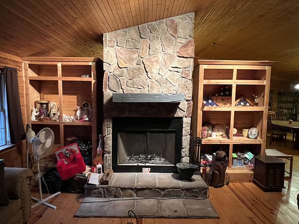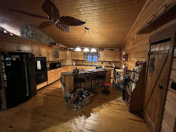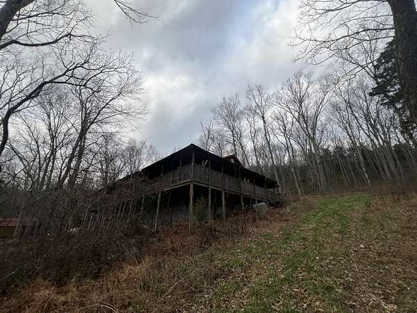 Check out this Log home on over 12 acres where you can hunt on your own land. This property needs a little love, but would make a wonderful retreat or even a hunter's paradise. The wrap around porch offers beautiful views almost as though you are in Gatlinburg. The exterior offers multiple storage sheds. The interior of this home offers a very large master suite with separate tub and shower, double sink vanity and has a walk-in closet. Vaulted ceilings in the living room, kitchen and dining. Living room offers a very large rock fireplace (wood) with built-in shelving and the kitchen offers a large island with plenty of room for entertaining and a nice size pantry. There is a second bedroom and full bath on the opposite side of the house and an extra room that can be used as an office. This home is being sold AS-IS.