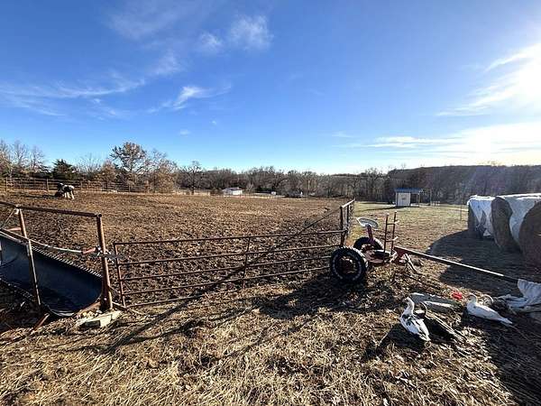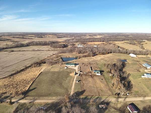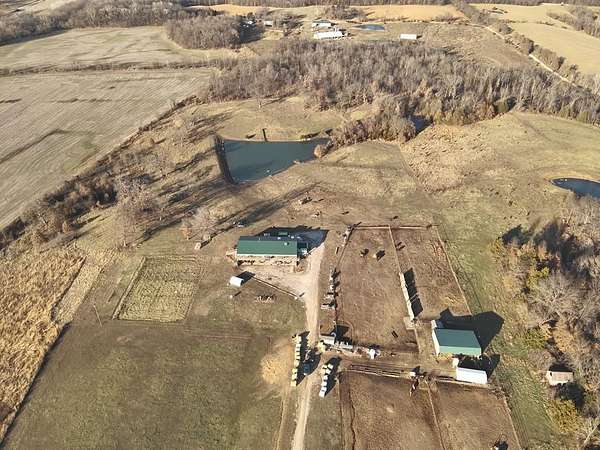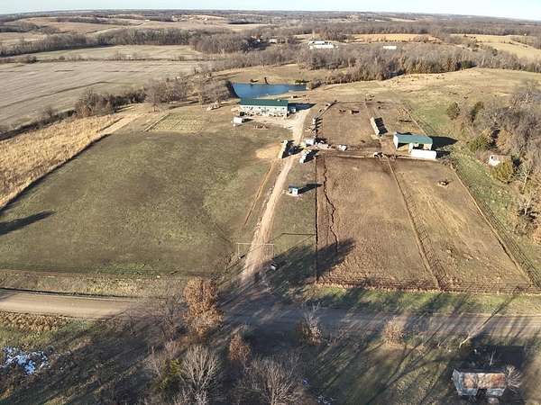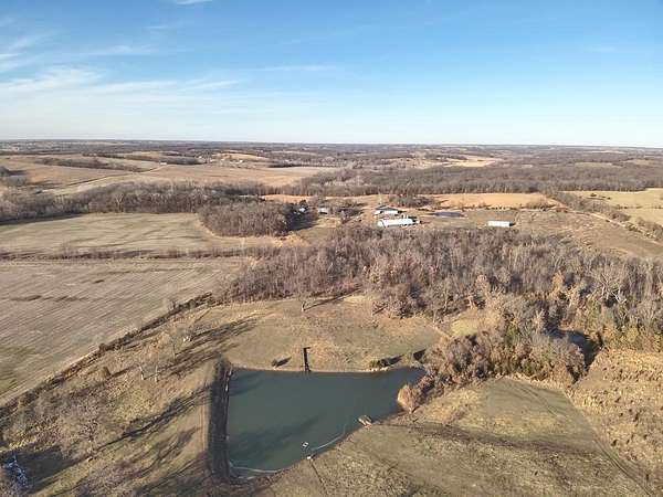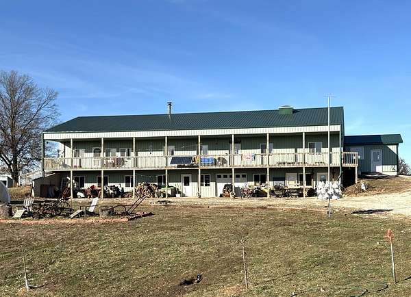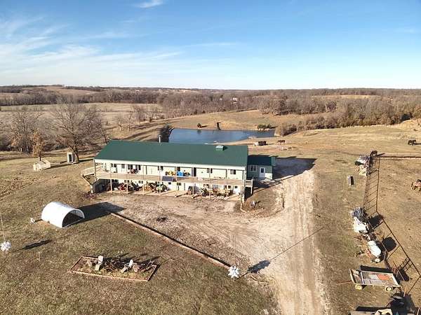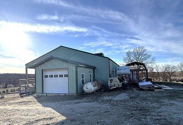 Est $1,677/moThis versatile two-story shouse on approximately 20 acres in rural Linn County, Missouri, offers an ideal live-work or hobby farm setup. The property includes 5 bedrooms, 2 bathrooms, and about 2,200 sq. ft. of living space. The upper level features an open-concept kitchen, dining, and living area, one bedroom, one bathroom, and a full-length covered porch, along with a 2,160-sq.-ft. cabinet shop and engine room. The lower level provides three bedrooms, one bathroom, storage, and an additional 2,160 sq. ft. of garage and office space. The land is well-suited for livestock and gardening, with a pond, established grape and blackberry vines, two food plots, and brush and timber offering excellent deer habitat and hunting opportunities.