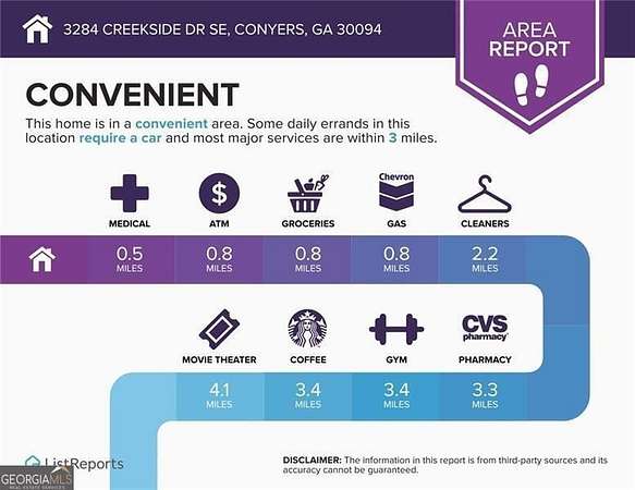 Welcome to 3284 Creekside Drive SE, Conyers, GA! Set on 2.75 acres with an expansive front yard, this beautifully maintained home blends charm, space, and versatility. The inviting front porch welcomes you inside to a bright, open layout filled with natural light. The living room features a cozy fireplace, while the kitchen offers sleek countertops, stainless steel appliances, abundant cabinetry, and a breakfast nook overlooking the grounds. The dining area is open to the kitchen, creating an easy flow for everyday living and entertaining. The primary suite is a peaceful retreat with a spa-inspired bath featuring a soaking tub and walk-in shower. Three additional bedrooms, including one that easily flexes as a media room, office, or gym, provide plenty of options for your lifestyle. A well-appointed secondary bath serves the additional bedrooms. Outdoor living is just as impressive with a spacious deck overlooking the private backyard, perfect for relaxation or gatherings. The property also includes a two-car detached garage, a long driveway, and a parking pad with room for several vehicles. Located in a quiet community yet close to shopping, dining, and schools, this home offers the perfect mix of privacy, comfort, and convenience.