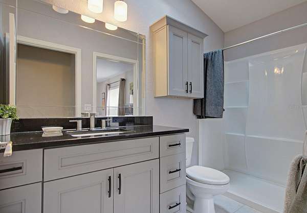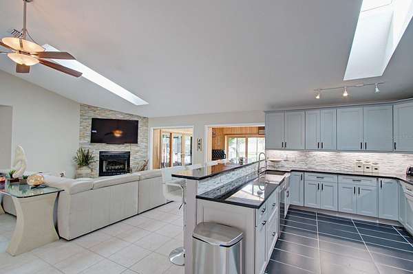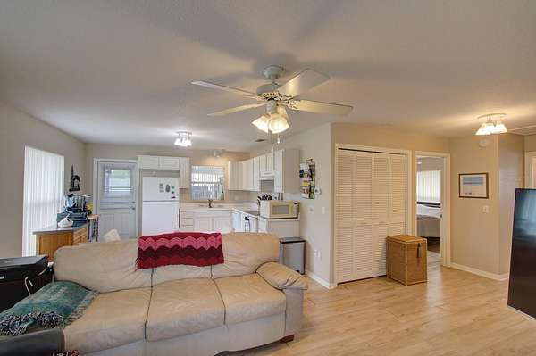 - Cathedral Ceiling(s), Living Room/Dining Room Combo, Open Floorplan, Solid Surface Counters, Solid Wood Cabinets, Thermostat, Window Treatments