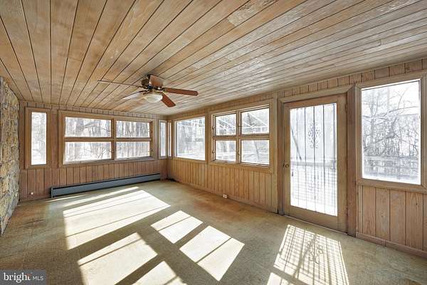 Welcome to The Poplars, a charming stone residence built in 1939 and located within the Bear's Den Rural Historic District. The home reflects the legacy of wealthy Washingtonians who were drawn to the area's beauty and privacy, and was originally designed for Wing Agnew, superintendent for the U.S. Bureau of Mines located at Mt. Weather. The property showcases exceptional stone craftsmanship, including original 4' x 4' entrance pillars dating to 1913 and extensive stone hardscaping. The paved driveway winds through sweeping lawns dotted with mature Tulip Poplars, Oaks, and Maples, arriving at a parking circle and welcoming flagstone terrace. Inside, the light-filled living room features gleaming hardwood floors, built-in bookcases, and a striking stone fireplace. The dining room offers expansive windows, a corner cabinet, and French doors opening to a sunroom with eastern valley views. The main level also includes a galley kitchen, bedroom or home office, and full bath. Upstairs is the primary suite with built-ins, a walk-in cedar closet and a full bath. Another guest bedroom with a unique half bath and plenty of storage finishes this level. The lower level provides a spacious family room with wood stove, full bath, storage, utility room, and garage access. A separate three-car garage, cleared fire pit area, storage shed, and mature gardens complete the property. Rich in history, privacy, and natural beauty, The Poplars offers a rare opportunity to own a distinctive Blue Ridge historic home. Starlink internet available. Property is part of an estate and is being offered "as is."
