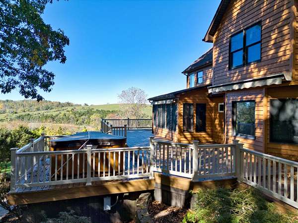 Stately 5 BR, 4.5 BA home w/ oversized 2-car garage situated on 3.4+ acres w/ a magnificent view of the surrounding mountains. The Chef's kitchen has been updated including quartz countertops & two islands; one for prep w/sink the other for eat-in convenience, Subzero Refrigerator, Wolf gas range, wall oven & breakfast nook w/ bay windows. Soak up some sun rays in the sunroom just off the very spacious family room & enjoy summer cookouts on the rear Trex deck. Four bedrooms upstairs along w/ the laundry room. The primary bedroom boasts an updated beautiful walk-in tiled shower w/ a great view & huge walk-in closet. Two of the bedrooms share a Jack & Jill bathroom. Finished, walk-out basement offers guest suite, full bath & additional living space w/ a woodstove & small kitchenette w/ refrigerator. Located only minutes to I-81, Carilion hospital & an easy commute to Virginia Tech, this beautiful property is in a perfect location. Call for a private showing today!
