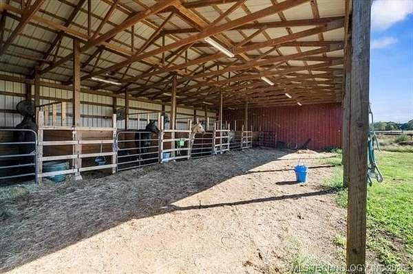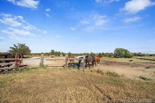 Don't miss your chance to own this iconic property nestled in the rolling hills just south of Henryetta. This home offers plenty of space and comfort, with several thoughtful updates made by the owners. A true turnkey horse property, it features two 6.3+- acre paddocks, a barn with 5 stalls, feed and tack room, plus a large shop, garden, and spacious chicken coop. The surrounding hay fields provide an opportunity for additional pasture or continued hay production. Added peace of mind comes with a Generac backup generator and an in-ground storm cellar--ideal for rural Oklahoma living. Equine enthusiasts will appreciate the breeding stocks and phantom that will remain with the property. Whether you're expanding your equine operation or starting your first, this property has everything you need. Conveniently located with easy access to Hwy 75 and I-40--just under an hour and a half from Tulsa, Oklahoma City, and Fort Smith, Arkansas--making it an ideal home base for all your equine disciplines and events.