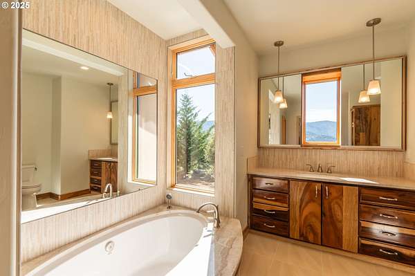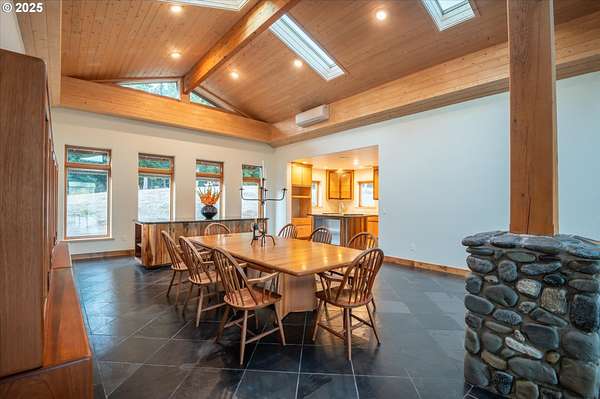 - Hardwood Floors, Heated Tile Floor, High Ceilings, Skylight, Slate Flooring, Soaking Tub, Vaulted Ceiling, Wood Floors