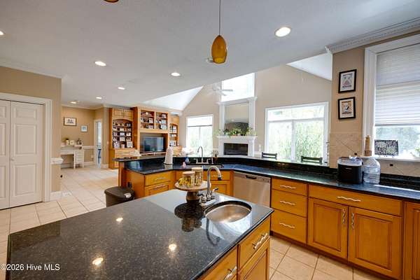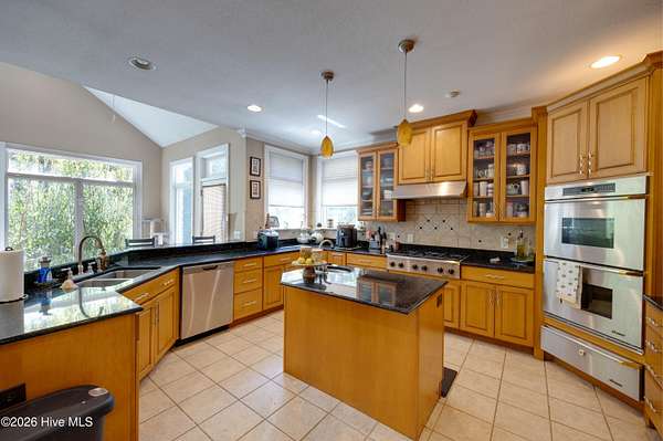 - Blinds/Shades, Ceiling Fan(s), Kitchen Island, Master Downstairs, Tray Ceiling(s), Vaulted Ceiling(s), Walk-In Closet(s), Walk-In Shower