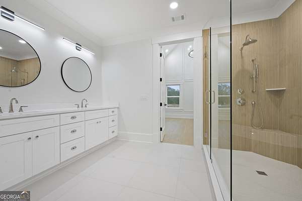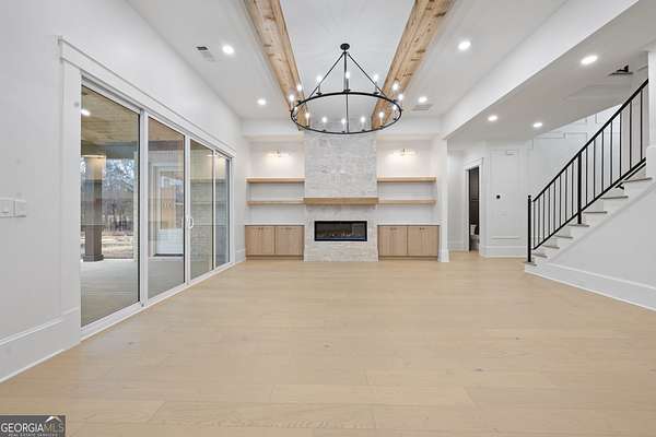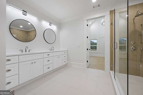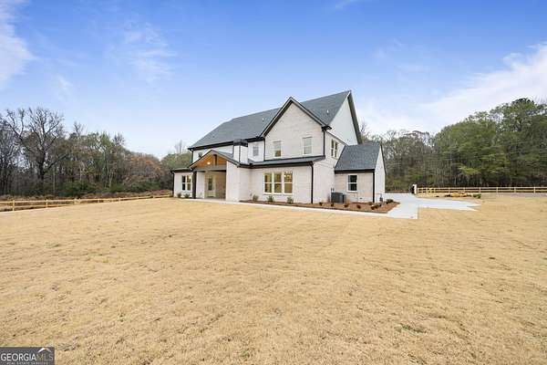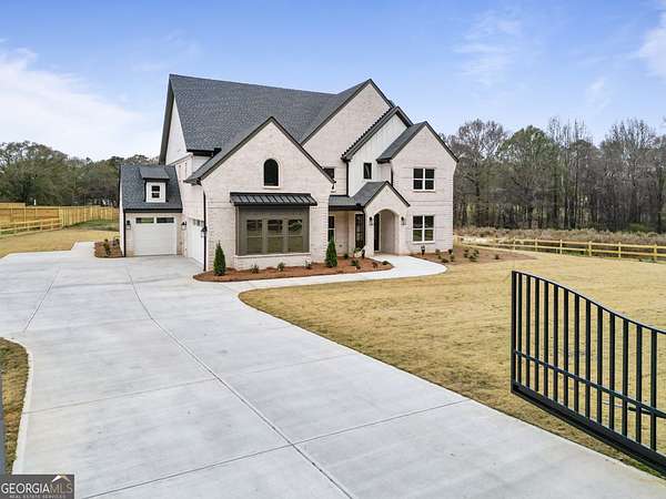 Discover unparalleled elegance in this completed Craftsman Estate, nestled on a private 1.59-acre lot with 200 feet of frontage. Boasting over 5,200 square feet of meticulously crafted living space, this home seamlessly blends timeless design with modern luxury. The chef's kitchen is a true showstopper, featuring top-rated appliances, custom cabinetry, and a gourmet prep kitchen, ideal for culinary enthusiasts and entertaining with ease. The residence offers two primary suites-one on the main level and another upstairs-each with spa-inspired baths and generous walk-in closets. Three additional bedrooms, each with its own private en-suite bath, provide comfort and privacy for family and guests. Entertain in style with a formal dining room, a spacious living room anchored by a fireplace, a private office, and an upstairs media room with its own fireplace, perfect for movie nights or casual gatherings. Step outside to the covered patio, where a third fireplace sets the perfect ambiance for al fresco entertaining. The expansive backyard offers room for a future pool or outdoor retreat. Luxury features abound throughout, including engineered hardwood flooring, spray foam insulation, dual laundry rooms, an EV charging station, and a hot water option at the outdoor faucet. With 10-foot ceilings on the main level, 9-foot ceilings upstairs, and 8-foot doors throughout, every detail reflects high-end craftsmanship. Experience the epitome of refined living at 3287 Hall Rd, where privacy, elegance, and thoughtful design come together in one extraordinary home.