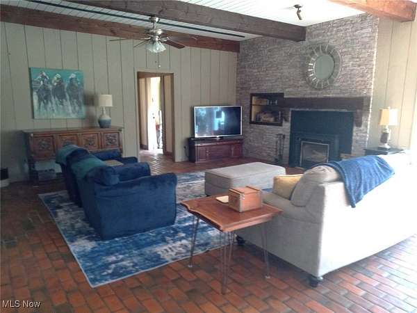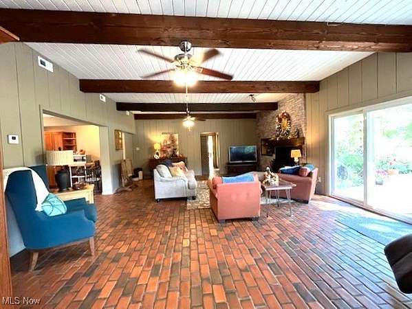 Sprawling well-maintained brick & cedar Ranch on 3.17 picturesque acres. Tranquil 1-acre pond with fountain and dock. Large Great Room w/fireplace. Sliding door to patio w/flowering gardens. Beautiful kitchen w/cherry cabinetry, newer backsplash, lighting, double sink and island w/Corian counters. Walk-in pantry w/additional cabinets. Additional row of cabinetry with some glass doors and eat-in area. Amazing 4-season sun room w/wall of windows, tile floor and wet bar to enjoy beautiful views. Dining room features wood floors and fireplace. Huge master suite consists of 4 areas with bedroom area, sitting room, closet/dressing area w/drawers and updated master bath. Six-stall horse barn w/some concrete floors, storage rooms & work room. 2-car attached garage.