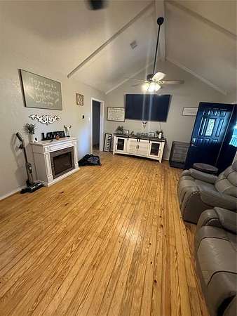 Charming 2-bedroom, 2-bath home on 1.613 acres featuring farmhouse style and open living spaces! The main home offers a spacious living room with V-shaped vaulted ceilings and a kitchen with abundant cabinetry, decorative lighting, and a large island with breakfast bar. Both bedrooms include ensuite baths with stand-up showers--ideal for dual primary suites. Property includes a 480 sq ft accessory unit (Tiny Home) with full kitchen, bath, bedroom, and living area. A separate 700 sq ft building currently used as a man cave offers potential for additional living space and is plumbed for a full bath to be finished out. Enjoy the above-ground pool with large built-on deck, perfect for entertaining or relaxing outdoors!