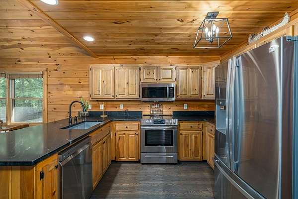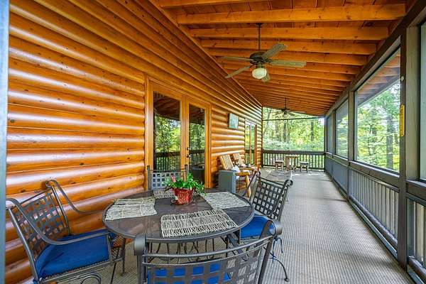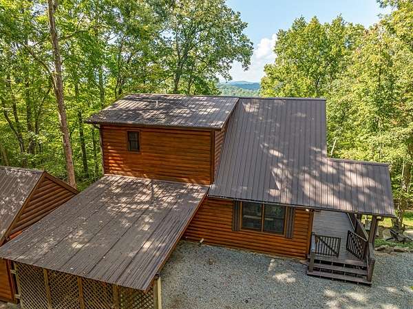 VIEWS, VIEWS, VIEWS! Year-round, long-range mountain views steal the show at this furnished hillside retreat. Morning coffee on the screened porch feels like a daily getaway, and sunset evenings stretch across two levels of outdoor living, a screened deck on the main level with access from the kitchen, living room, and main-floor bedroom, plus an open deck on the lower level where the views keep going. Inside, an open, L-shaped living, dining, and kitchen layout frames the scenery and makes gathering easy. The kitchen features recent appliances and a water purification system. Each floor offers a bedroom and a full bath for privacy and flexibility, the upper level holds the primary suite, the main level includes a guest bedroom with porch access, and the lower level bedroom opens to the deck. A huge finished basement rec room anchors movie nights, game days, or extra sleeping space. Tucked at the end of a private, gated road for true peace and quiet, you are still close to town and the lake. Work or stream with confidence thanks to high-speed fiber internet. Choose your water source: private well or available city water. Practical perks include a carport, a storage shed, and spacious bathrooms. Built into the hillside to maximize the view, this home was designed to soak in the mountains from every angle. Settle in, the hard part is deciding which deck chair to claim first!