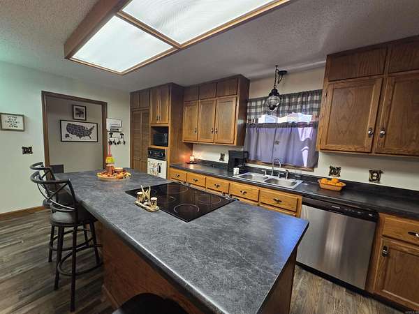 Discover your Ozark retreat with stunning year-round views of Lake Norfork from this beautiful 3-bedroom, 2.5-bath home on 10 acres M/L adjoining the government strip. A gentle slope leads to the Corp line, with easy access down a quiet gravel road and a boat launch less than 10 miles away. Inside, enjoy freshly painted interiors and a spacious kitchen with custom cabinetry, new countertops, and a large island with all appliances included. Recent updates include a new roof, wiring, pressure tank, hot water heater, refrigerator, and dishwasher for peace of mind. Relax by the cozy pellet stove or unwind on the back deck and take in unforgettable Ozark sunsets. The property also features a whole-house fan, attached garage, and a 2-bay shop with loft ideal for hobbies or storage.This home perfectly blends modern comfort with the natural beauty of the Ozarks. Listed at $449,000 make your lake view dream home a reality.
