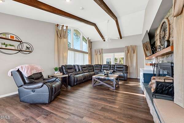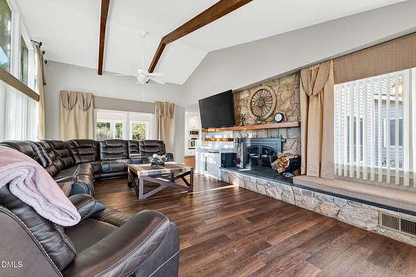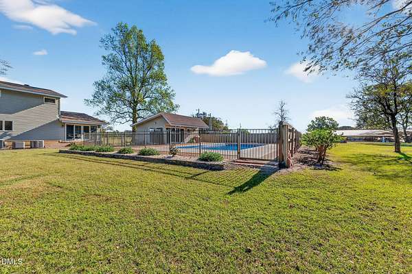 Stunning home Almost 3000 SF in Wayne County, NC, just minutes from Hwy 70 for easy access to Goldsboro and Kinston. Enjoy your own private getaway at home with your very own BACKYARD 20x 40 IN-GROUND POOL and a peaceful, PRIVATE SETTING on over 2 ACRES and NO HOA! The exterior showcases BEAUTIFUL STONE ACCENTS that continue inside the home. Step into a bright, open living area filled with NATURAL LIGHT, VAULTED CEILINGS, and WOOD BEAMS. The STONE FIREPLACE creates the perfect space for relaxing or entertaining. Enjoy the SUNROOM featuring STONE ACCENT WALL and a perfect view of the backyard and POOL area. The KITCHEN is absolutely beautiful with WHITE CABINETS, GRANITE COUNTERTOPS, STONE BACKSPLASH, and an AMAZING AMOUNT OF CABINET SPACE. There's also both a FORMAL DINING AREA and an EAT-IN SPACE for everyday meals. The PRIMARY SUITE is conveniently located on the FIRST FLOOR, featuring a spacious layout, TILE BATHROOM, and plenty of NATURAL LIGHT. Additional bedrooms are located upstairs for added privacy. Outside, enjoy the POOL HOUSE with its own BATHROOM and LOUNGE AREA - perfect for entertaining or relaxing all summer long. With so much charm, space, and potential, this home is truly a must-see!