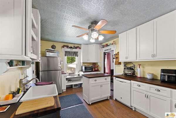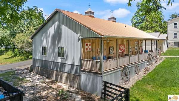 Step into timeless charm and modern convenience with this spacious 5-bedroom, 2-bath historic home offering 3,364 sqft of living space on a scenic 1.6-acre lot. Perfectly blending classic character with thoughtful updates, this property is ideal for those seeking room to grow, gather, and relax in a private countryside setting. The home boasts generous living spaces, including a large kitchen featuring a brand-new stove and refrigerator (2024), a cozy covered 8-foot front porch/deck with ceiling fans and wall lamps for year-round enjoyment, and a traditional cellar for added storage. Upstairs and downstairs HVAC systems (installed in 2017 and 2024 respectively) and a new water heater (2025) ensure comfort and efficiency throughout the seasons. The house is protected by a durable shingle roof installed just 5 years ago. Out back, the fully fenced perimeter offers peace of mind and privacy, while the outdoor hot tub on a covered slab is perfect for relaxing after a long day. Additional outdoor features include a hen house, two sheds, and a lean-over in the field - all included with the property. A standout feature is the Amish-built shop/garage (constructed in 2019), designed with two 12-foot bay doors, attic/storage space, a man door, and enough room to easily fit three vehicles. A cozy covered 8-foot front porch/deck with ceiling fans and wall lamps perfect the want for year-round enjoyment. It includes a finished man cave/gathering room with its own toilet and sink-ideal for hobbies, entertaining, or weekend lounging. The property is served by a modern septic system replaced in 2017 and professionally cleaned and inspected in 2024. Families will appreciate flexible school options in Hardin, LaRue, or Hart districts. Don't miss your chance to own a one-of-a-kind historic home with systems, unique outdoor amenities, and space to live, work, and play- all in a peaceful rural setting.
