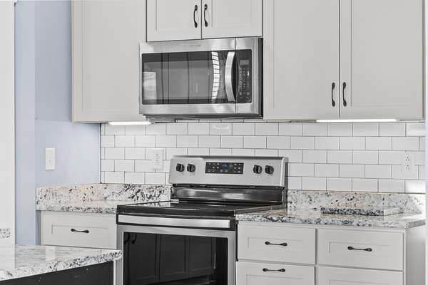 - Dishwasher, Electric Oven, Electric Range, Microwave, Refrigerator, Stainless Steel Appliance(s)