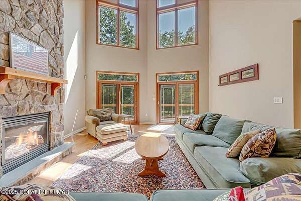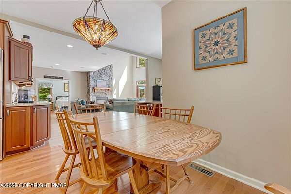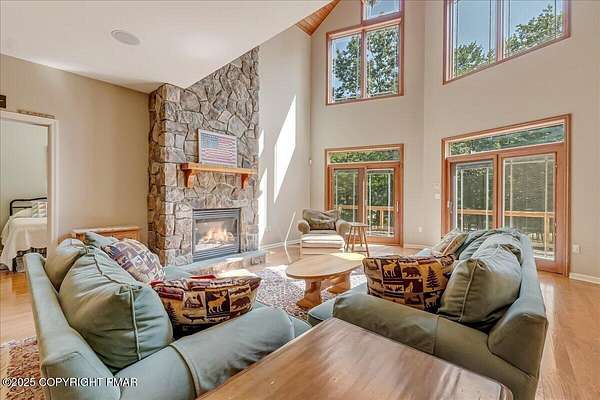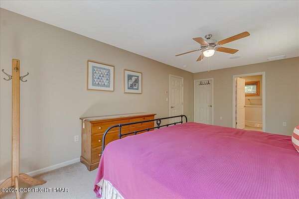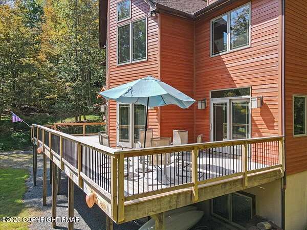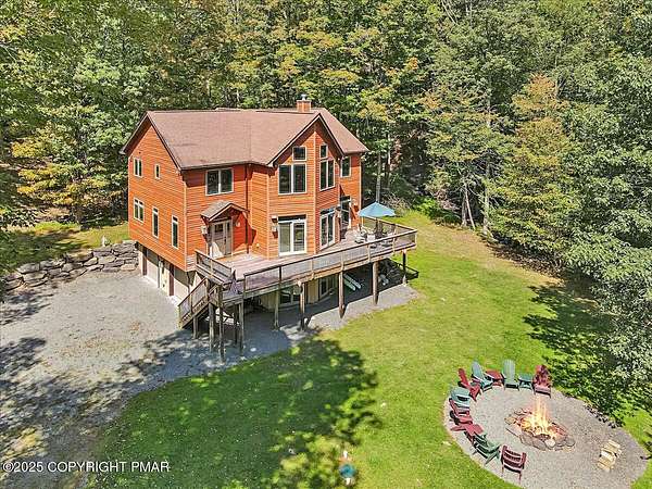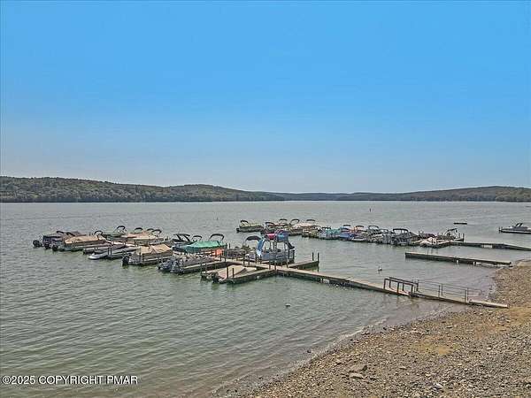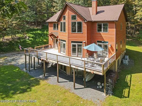 Set on one of the largest lots in the desirable Sandy Shore community, adjoining the beautiful community lakefront, this spacious 4-bedroom, 3.5-bath home combines privacy, convenience, and comfort. The house is set well back from the road and along a peaceful stream, creating a quiet and secluded feel, while still offering easy walkable access to the community's access area and your included boat slip-just steps from the lake and the new community pavilion. A welcoming large deck, soaring ceilings, and a striking stone fireplace set the tone for gatherings and relaxation. The custom-designed kitchen, outfitted with high-end stainless steel appliances, is both functional and stylish, making it ideal for everyday living and entertaining. Two en-suite bedrooms with walk-in closets provide private retreats, while two additional bedrooms, a spacious loft, and a nearly finished basement with a bonus room add versatility for family, guests, or work-from-home needs. A 1.5-car garage completes the picture, and the oversized lot enhances the home's sense of space and tranquility, making this one of the rare opportunities in Sandy Shore where size, privacy, and convenience all come together.