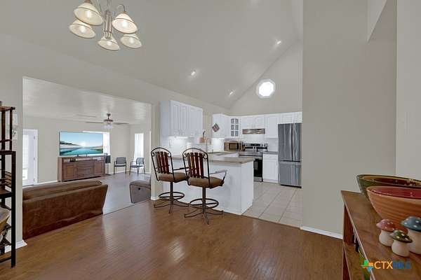 - All Bedrooms Down, Breakfast Bar, Ceiling Fans, High Ceilings, Kitchen Dining Combo, Kitchen Family Room Combo, Multiple Living Areas, Open Floorplan, Pantry