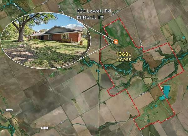This is more than a home; this is a quintessential Texas estate! When you visit this expansive 1,368+- acres, you'll find it all, a family home, grazing pastures, cultivated farmland, hay fields, barns, stock ponds and woodlands. The family homestead is secluded in a treed area with privacy from the road featuring 4 bedrooms, 2 full bathrooms and a two-vehicle garage. Over generations, this estate was created by an assemblage of individual tracts of contiguous land fronting Lowell Rd, Cosby Rd, and Majors Rd with multiple points of access and thousands of feet of frontage. Mill Creek winds through the heart of the ranch and serves as a corridor for deer and native wildlife, offering hunting and recreational activities in the heavily wooded areas where mature pecan tree groves and various hardwood trees reside. Most of the north side of the property is cultivated farmland, the center is wooded creek, and the south side is primarily fenced grazing pastures with stock ponds, barns and cattle pens. The precise configuration and use of land may adjust from year to year. This opportunity offers something for all who appreciates traditional farming, ranching and recreation--making it a true North Texas gem. The Land ID profile is available upon request offering additional details about how these properties are assembled and their respective boundaries. The new boundary survey is in the works and is expected to be available for review by the middle of November. For information about the land, farming and ranch please visit MLS # 21096774.