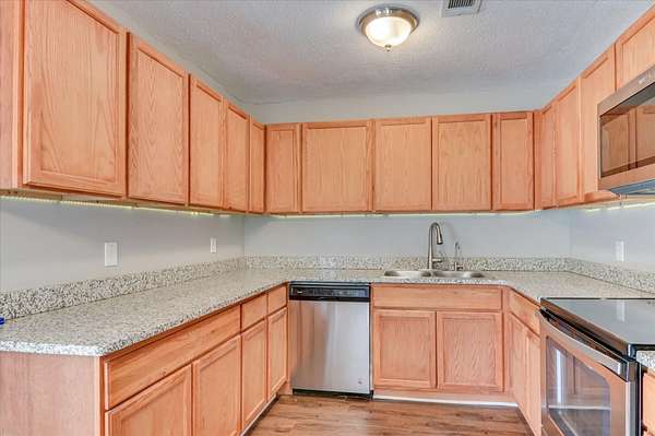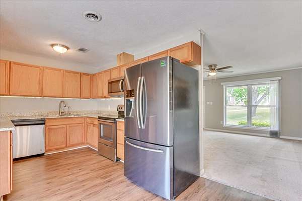 - Dishwasher, Electric Range, Refrigerator, Vented Exhaust Fan