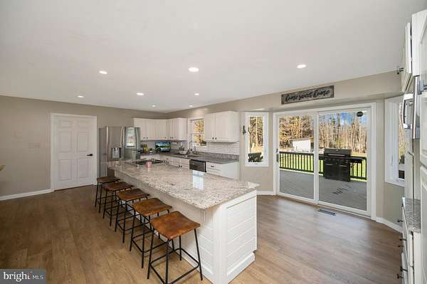 Welcome to 329 Mount Olive Road in Stafford, where peaceful country living meets everyday convenience. Nestled on just over 3 acres, this property offers the best of both worlds-only about 15 minutes from major shopping and dining, yet far enough away that the sounds of traffic fade and are replaced by birds chirping and the calming rhythm of nature. From the moment you arrive, the large front porch sets the tone for this home. It's the perfect place to start your morning with coffee, soak up the sunshine, or unwind in the evening while enjoying the quiet surroundings. A spacious driveway provides plenty of parking for guests and leads to the oversized two-car garage. From the garage, step inside through the thoughtfully designed mudroom featuring a built-in coat rack to keep everything organized. This space also includes washer and dryer hookups, offering the option for convenient main-level laundry. Continue into the heart of the home where the kitchen welcomes you with granite countertops, crisp white cabinetry, and stylish black accents. The kitchen flows easily into the dining area, creating a comfortable space for everyday meals or gatherings. Sliding glass doors lead to the large back deck-an ideal setting for entertaining, grilling, or simply enjoying the privacy of your backyard and the surrounding nature. The main level also offers flexible living spaces, including a comfortable living room featuring an electric fireplace that creates a warm and inviting atmosphere. A full bathroom and bedroom are also located on this level, along with an additional room that provides versatility and could easily serve as a home office, guest space, or another bedroom depending on your needs. Upstairs, the main sleeping quarters provide plenty of space for family and guests with four bedrooms and three full bathrooms. Two of the bedrooms feature their own private en-suite bathrooms, while the third full bathroom is conveniently located in the hallway. Luxury vinyl plank flooring runs throughout the home, with the staircase to the upper level being carpeted for added comfort. Head downstairs to the finished basement, where the luxury vinyl plank flooring continues, and the possibilities expand even further. This level offers a large open area that is perfect for gatherings, game nights, or relaxing, and the pool table conveys with the home at no additional cost. The basement also includes two additional oversized storage rooms, providing plenty of space for seasonal items, hobbies, or organization. Walk-out stairs from the basement lead directly outside, offering convenient access to the fenced-in backyard and farm/farmette. The barn has electricity and is the perfect space for a hobby farm! With its combination of space, functionality, and peaceful surroundings, 329 Mount Olive Road offers a lifestyle that feels both relaxed and connected. Be sure to visit this beautiful home to experience everything it has to offer.