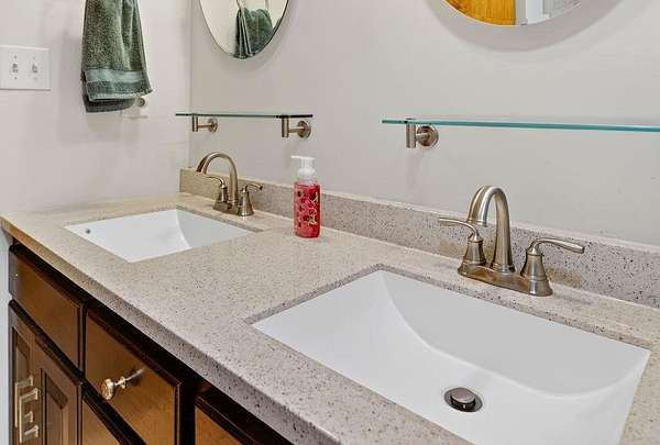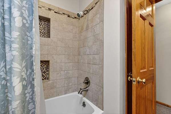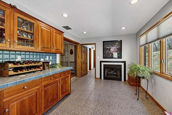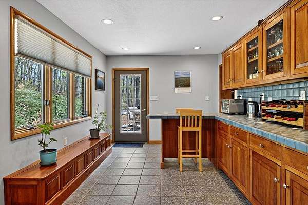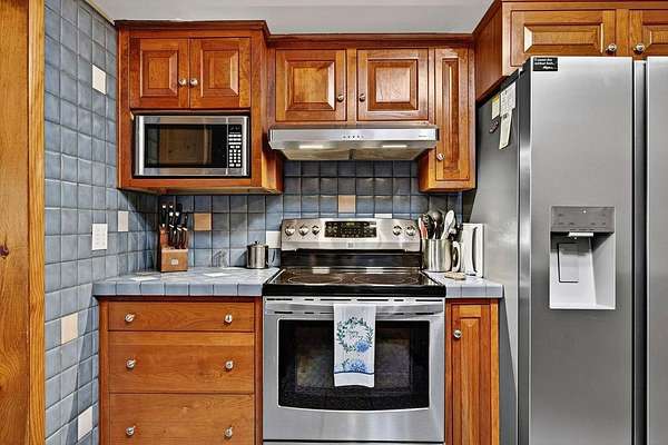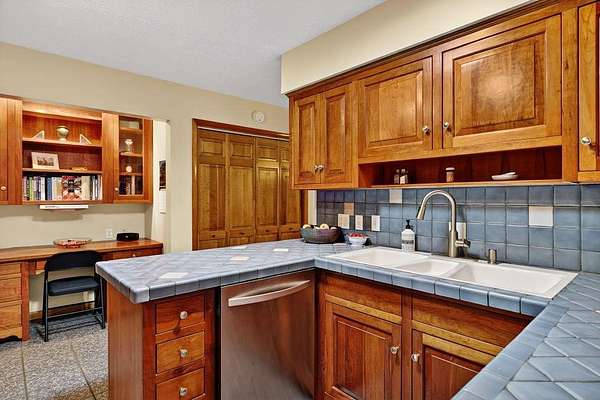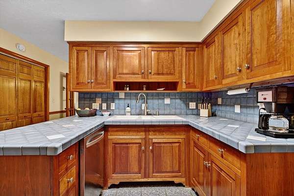 - Tile Counter, Wood Cabinets