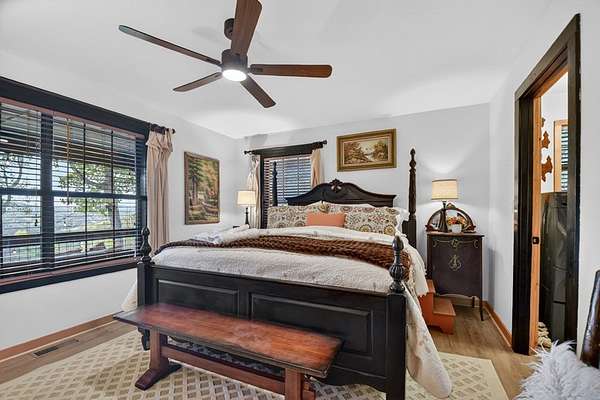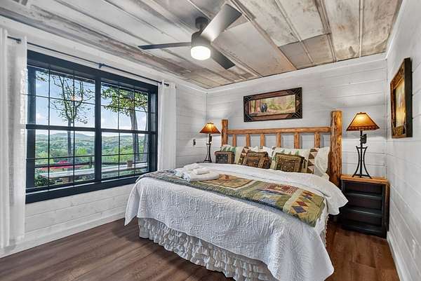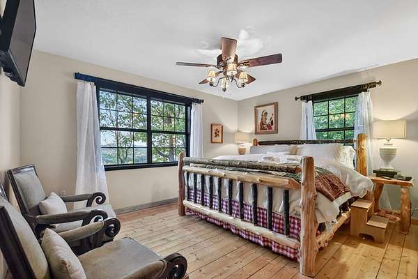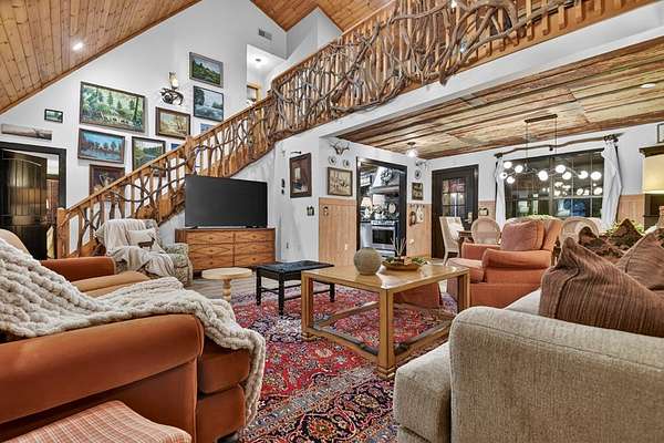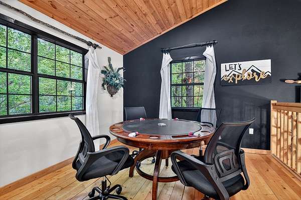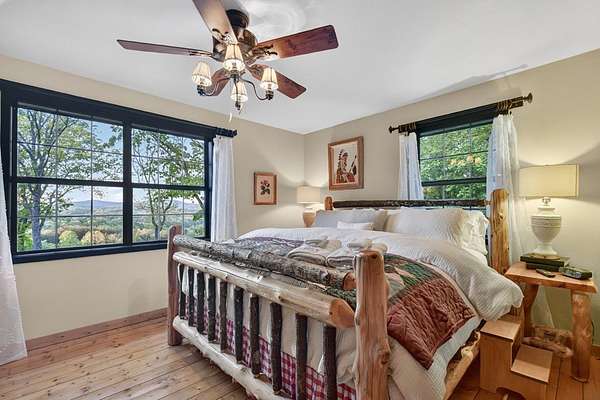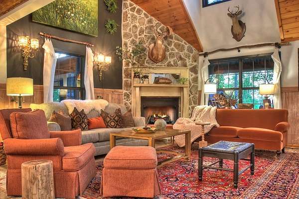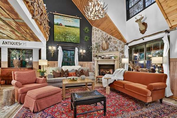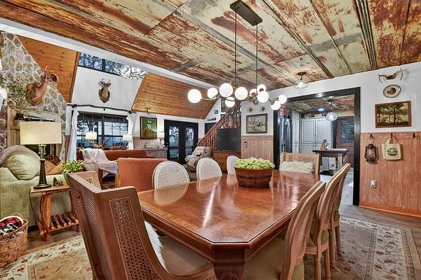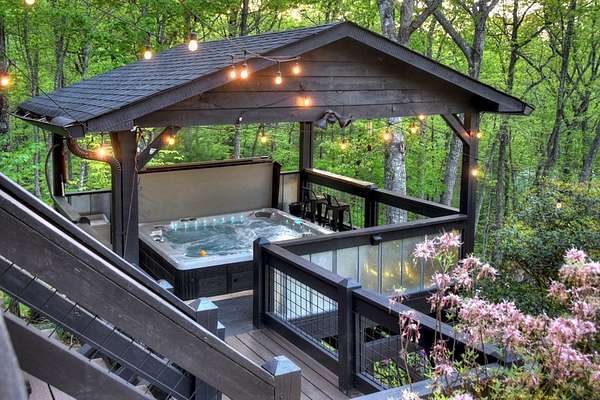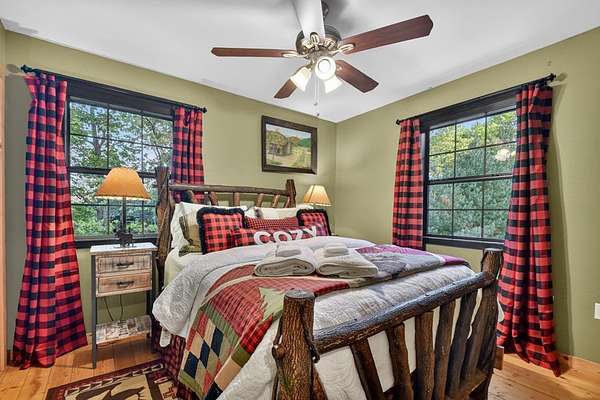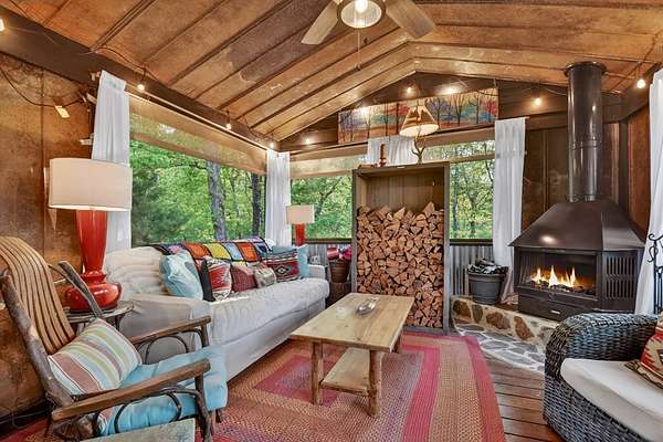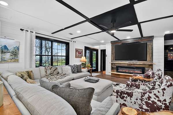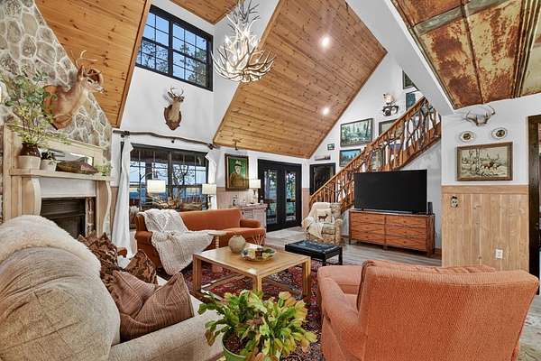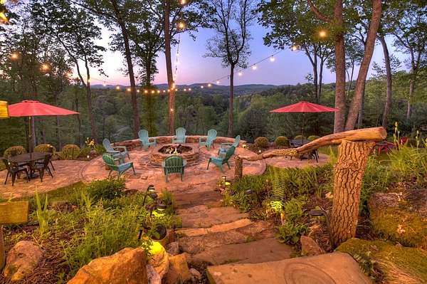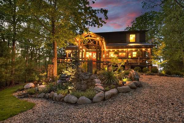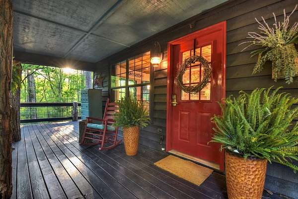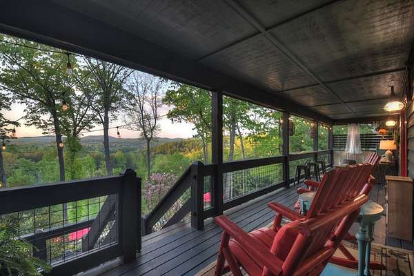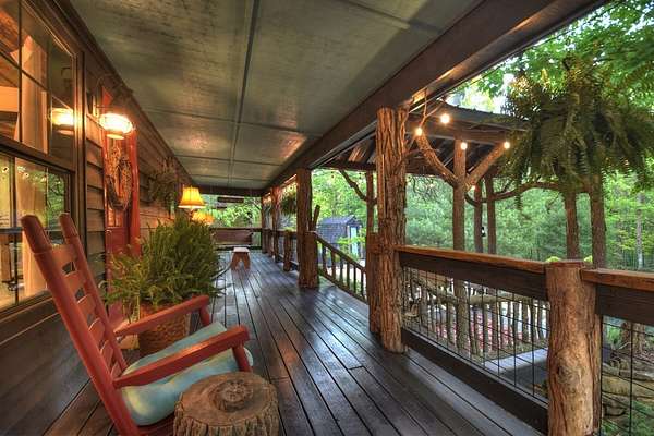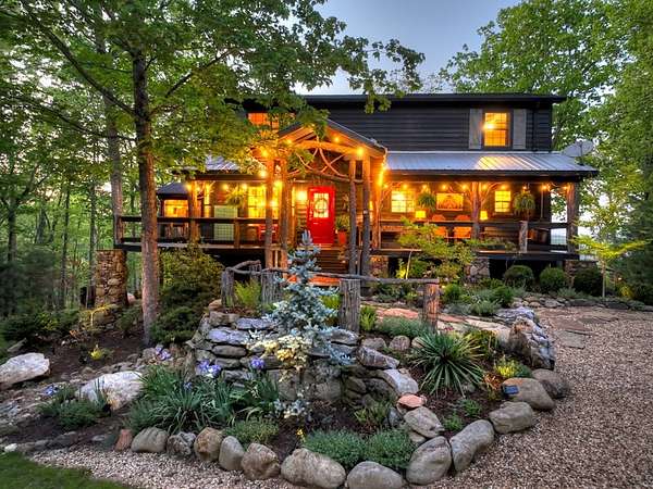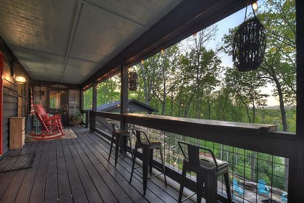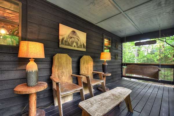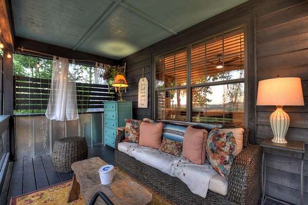 Welcome to 329 Robinson Thomas Road—an exceptional designer retreat that feels straight off the pages of Southern Living, blending eclectic charm with rustic elegance and Highlands, NC–inspired style. This thoughtfully curated four-bedroom mountain home, complete with a bunk room or theater and expansive loft, showcases a stunning open-concept living and dining area anchored by a gorgeous stone fireplace and framed by soaring cathedral ceilings with warm, inviting accents. The gourmet kitchen is equally captivating, featuring painted cabinetry, stone countertops, and timeless character throughout. Step outside to the wraparound deck and discover the true showpiece—the screened-in porch with layered mountain views, complete with a fireplace, wet bar, and TV lounge designed for year-round enjoyment. The main level offers a serene primary suite with ensuite bath and laundry, while upstairs hosts two bedrooms with a shared bath. The terrace level is built for entertaining, featuring a spacious den with fireplace, full wet bar, additional bedroom, bunk room or theater, and walk-out access to a beautifully hardscaped fire pit area under the stars, along with a covered jacuzzi porch perfectly positioned between levels. Surrounded by established designer landscaping, enhanced with low-voltage lighting, and offered fully furnished with refined interiors, this home delivers a seamless blend of luxury, comfort, and style—just minutes from Downtown Blue Ridge, Lake Blue Ridge, and Blairsville.