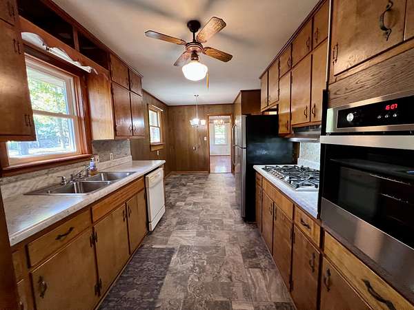 Tucked away on a peaceful dead-end street in an established quiet neighborhood. This three-bedroom, two-bath home offers comfort, space, and convenience. Inside, you'll find original hardwood floors, gas cook-top, updated windows, Roof/Gutter was placed in 2017, Built in electric oven placed in 2025. The full unfinished basement--complete with a bathroom--provides endless potential for extra living space, storage, or a workshop. Enjoy the outdoors on your large deck overlooking 4 beautiful acres within the city limits. Perfect for those looking to downsize. This property combines privacy with accessibility. Easy commute to Clarksville, Fort Campbell, Paris Landing, and Land Between the Lakes. Convenient to local schools, city parks, and the public boat ramp--ideal for those who love a quiet lifestyle with nearby conveniences.