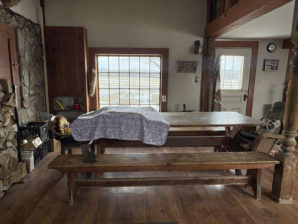 Discover your lakeside retreat on the shores of Lake Champlain, boasting breathtaking west-facing views of the Adirondacks.With just over 80 feet of owned and private Lakefront, this charming property features a gradual sloping lawn leading down to the water's edge, complete with a concrete boat ramp for easy lake access. The main residence offers a cozy, rustic ambiance with softwood floors, original woodwork, and an inviting open kitchen and dining area crowned by a cathedral ceiling. Stay warm by the wood stove in the kitchen during cooler months. An attached three-car garage includes a one-bedroom apartment above--ideal for guests, short-term rental, or owner occupancy. With an original ice house and a barn featuring sliding doors, this unique estate is full of character and potential. Ready for your creative vision, there's even the possibility to convert the space into a three-unit property. Embrace lakeside living with endless charm and opportunity.