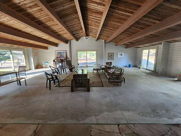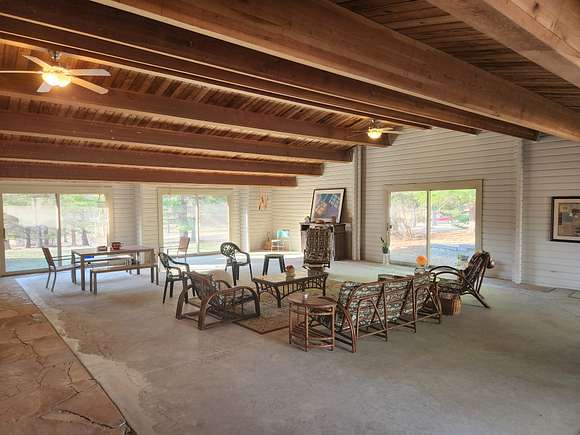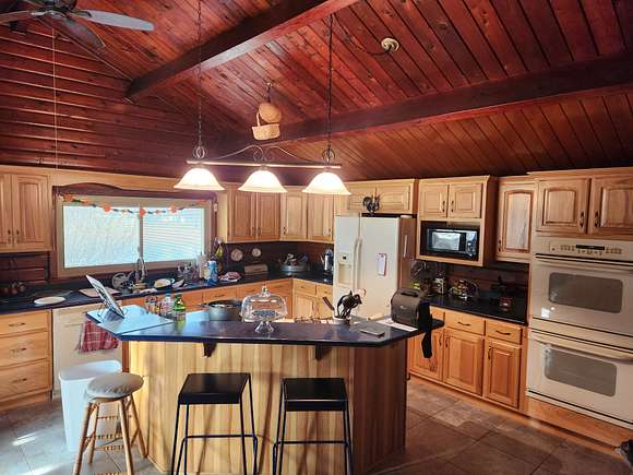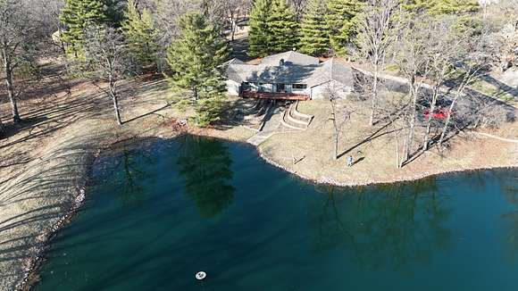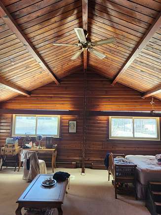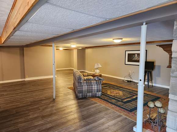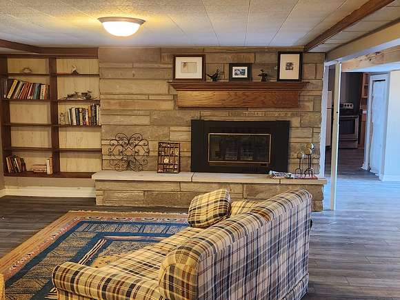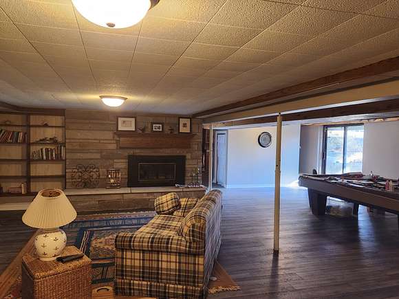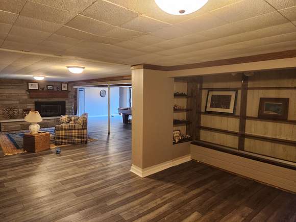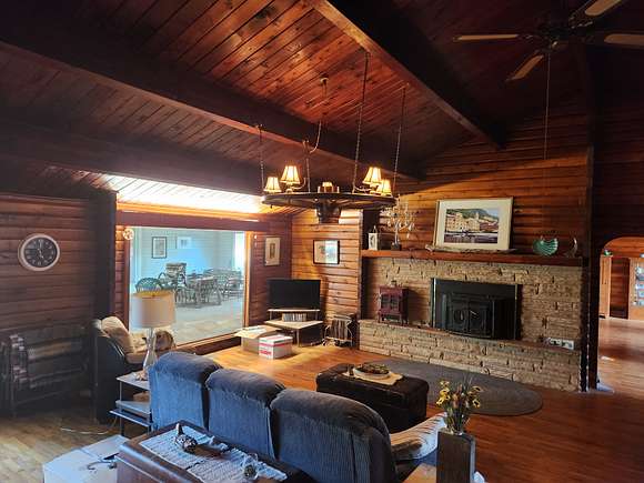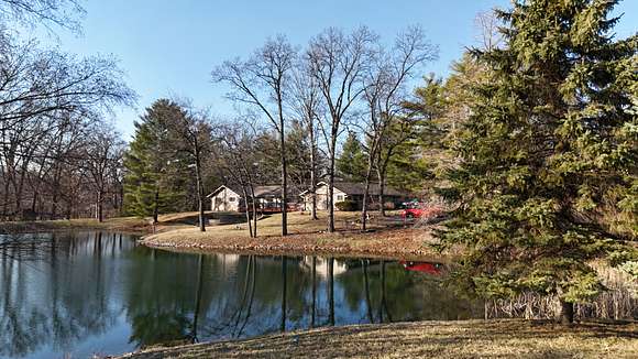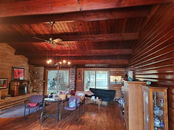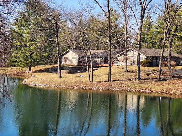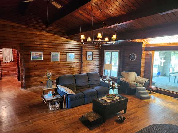 Welcome to this sprawling, log cabin style ranch overlooking a stocked pond. This home features 4 bedrooms, 4.5 bathrooms, an eat-in kitchen with breakfast nook, gas stove on the island and double ovens, 2 spacious living areas on main floor, 2.5 heated car garage, 3 season room and full basement. The 1280 square foot, 3 season room is ideal for entertaining with a cathedral ceiling, full bath and abundance of natural light. The walk-out basement has a large, open living/game room with pool table, full bathroom, kitchen area, 2 storage rooms, and an office/flex room. Master bedroom with ensuite bathroom. Terraced garden with perennials. Double sinks in 2 of the full bathrooms. Hardwood floors and wood beamed ceilings on the main level. Book your showing today!