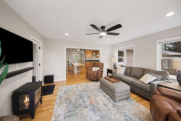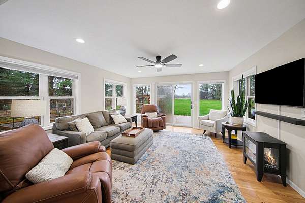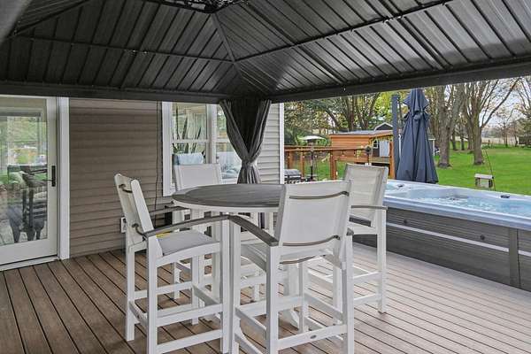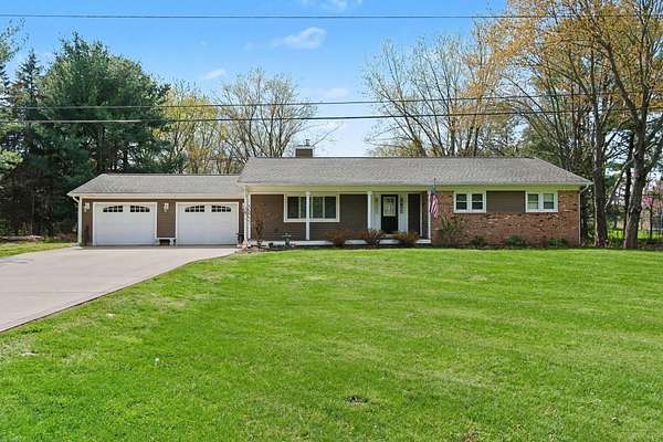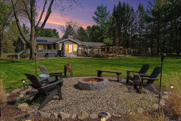 Showings start with Open House 4/26 from 1-3! Charming 3-bedroom, 2-bath ranch on just under 2 acres loaded with upgrades and unique features! This home offers beautiful hardwood floors, a spacious front dining room with a wood-burning insert fireplace, perfect for entertaining, as well as granite kitchen with a sizeable island & eating space. The sun-filled family room opens to a true backyard oasis with a Trex deck covered by a pergola. Enjoy a park-like setting with raised garden beds & greenhouse in the fenced garden area, all surrounded by a private, tree-lined yard with 18 maples, ideal for syrup making. The main-floor primary includes a walk-in closet, electric fireplace, private access to the rear deck & easy entry to a custom-tiled bath with bidet. A second full bath with new custom shower is conveniently located near the heated 2 car garage entrance. The partially finished lower level offers additional living space with a second family/rec room, office or potential 4th non-conforming bedroom, workshop & two cold storage pantries. Mechanical features include both a gas furnace with humidifier & boiler system, whole-house fan, generator hookup & security cameras. Need more space? A 30x36 heated pole barn is perfect for a workshop or hobbies, along with an additional 14x16 garden/storage barn. Ideally located less than a mile to the highway and just minutes to downtown. Swim spa is negotiable...