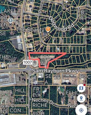 4.376 Acres - Mixed Use Land with Utilities Available! Prime opportunity near Lake Sam Rayburn! This 4.376-acre property includes 3.986 acres of unrestricted land and an additional 0.39-acre restricted portion, giving you versatile options for residential or commercial use. Ideally located just 1 mile from a public boat ramp and 2 miles from Rayburn Country Resort, the property offers entrances from both FM 1007 and Sam Rayburn Parkway. A beautiful creek runs near the back, adding natural charm. With all utilities available, this tract is ready for your vision--whether building a dream home, vacation retreat, or business venture.