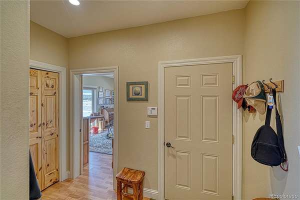 The kitchen is both stylish and functional, with granite countertops and hickory cupboards. There is a large pantry in the utility room next to a bathroom with a stackable washer/dryer.