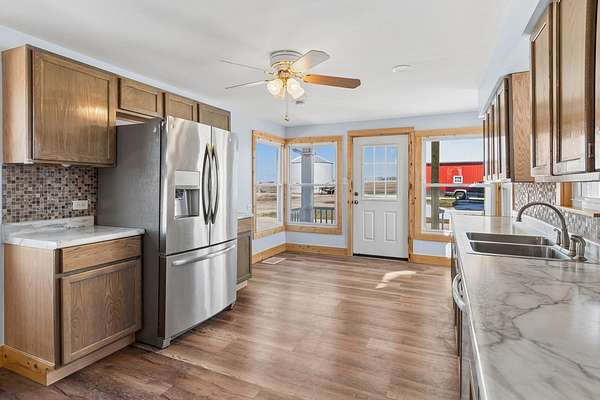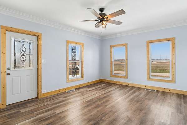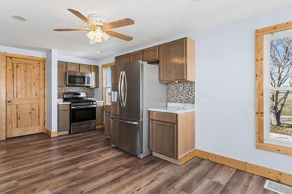Enjoy peaceful country living on this beautifully updated 6-acre farmette. The 4-bedroom, 2-bath home has undergone a renovation in 2022, including all-new mechanicals, updated electrical and plumbing, new insulation, flooring, and fully remodeled kitchen and bathrooms-providing true move-in-ready peace of mind. Approximately 4.1 acres are currently planted in alfalfa, making this property ideal for hobby farming, livestock, or potential supplemental income. The land is open and usable, offering flexibility for a variety of rural lifestyles. The property is well-equipped with multiple outbuildings, including a cattle/horse barn, grain bin, and two additional outbuildings, all offering excellent space for storage, equipment, animals, or workshop use. Recent improvements continue through 2025 and 2026, including barn updates, new windows on the buildings, and fresh exterior paint on the buildings. Whether you're looking to start a hobby farm, bring your animals, or simply enjoy wide-open space and quiet surroundings, this property offers endless possibilities with the added benefit of major updates already completed.