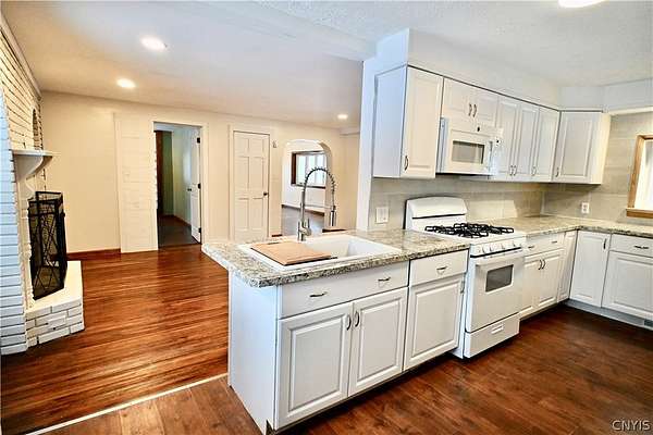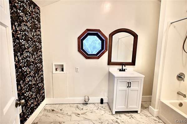 Welcome to this beautifully updated 4-bedroom, 2 full bath home set on a quiet country road at 3292 Simmons Rd in Vernon! Situated on an oversized yard offering privacy and space to enjoy the outdoors, this property blends peaceful country living with modern updates throughout. Inside, you'll love the bright open-concept layout connecting the kitchen and living room, perfect for everyday living and entertaining. The kitchen has been thoughtfully refreshed with a new microwave/vent, ceramic tile backsplash, new sink and faucet, updated lighting, and stylish finishes. The main level offers the convenience of a first-floor bedroom and first-floor laundry, along with a completely remodeled full bath. Upstairs, you'll find additional spacious bedrooms, including a primary suite featuring walkout French doors that lead to a private rooftop terrace-an ideal place to relax and unwind. Extensive recent upgrades make this home truly turnkey, including new flooring, fresh interior paint, new interior doors, a new staircase, updated plumbing throughout, an updated upstairs bathroom, electrical updates, an updated water pump, a new concrete front porch, and a brand new radon mitigation system installed in January 2026. Outside, enjoy the ease of a horseshoe driveway, a 1.5-car garage for storage, and a brand new wood shed that conveys with the sale. Offering space, privacy, and modern improvements in a peaceful setting, this home is ready for its next owner to move right in and enjoy.