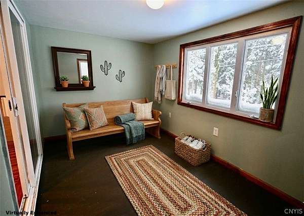 Welcome to this beautifully updated 4-bedroom, 2 full bath home set on a quiet country road at 3292 Simmons Rd in Vernon! Situated on an oversized yard offering privacy and space to enjoy the outdoors, this property blends peaceful country living with modern updates throughout. Inside, you'll love the bright open-concept layout connecting the kitchen and living room, perfect for everyday living and entertaining. The kitchen has been thoughtfully refreshed with a new microwave/vent, ceramic tile backsplash, new sink and faucet, updated lighting, and stylish finishes. The main level offers the convenience of a first-floor bedroom and first-floor laundry, along with a completely remodeled full bath. Not one, but two, expansive living areas on the first floor, one with a beautifully preserved white brick wood-burning fireplace for those cozy evenings! Upstairs, you'll find additional spacious bedrooms, including a primary suite featuring walkout French doors that lead to a private rooftop terrace-an ideal place to relax and unwind. Extensive recent upgrades make this home truly turnkey, including new flooring, fresh interior paint, new interior doors, a new staircase, updated plumbing throughout, an updated upstairs bathroom, electrical updates, an updated water pump, a new concrete front porch, and a brand new radon mitigation system installed in January 2026. Outside, enjoy the ease of a horseshoe driveway, a 1.5-car garage for storage, and a brand new wood shed that conveys with the sale. Offering space, privacy, and modern improvements in a peaceful setting, this home is ready for its next owner to move right in and enjoy. Some photos have been virtually staged.